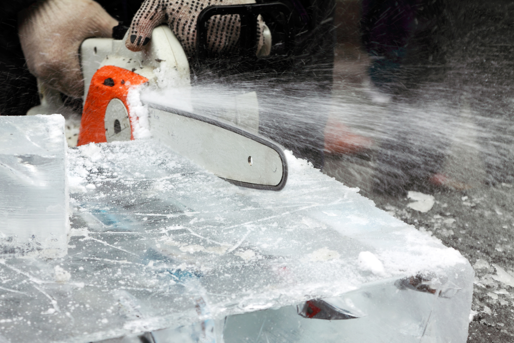 A chainsaw is the ideal tool for cutting ice, while small electric saws are perfect for intricate details.