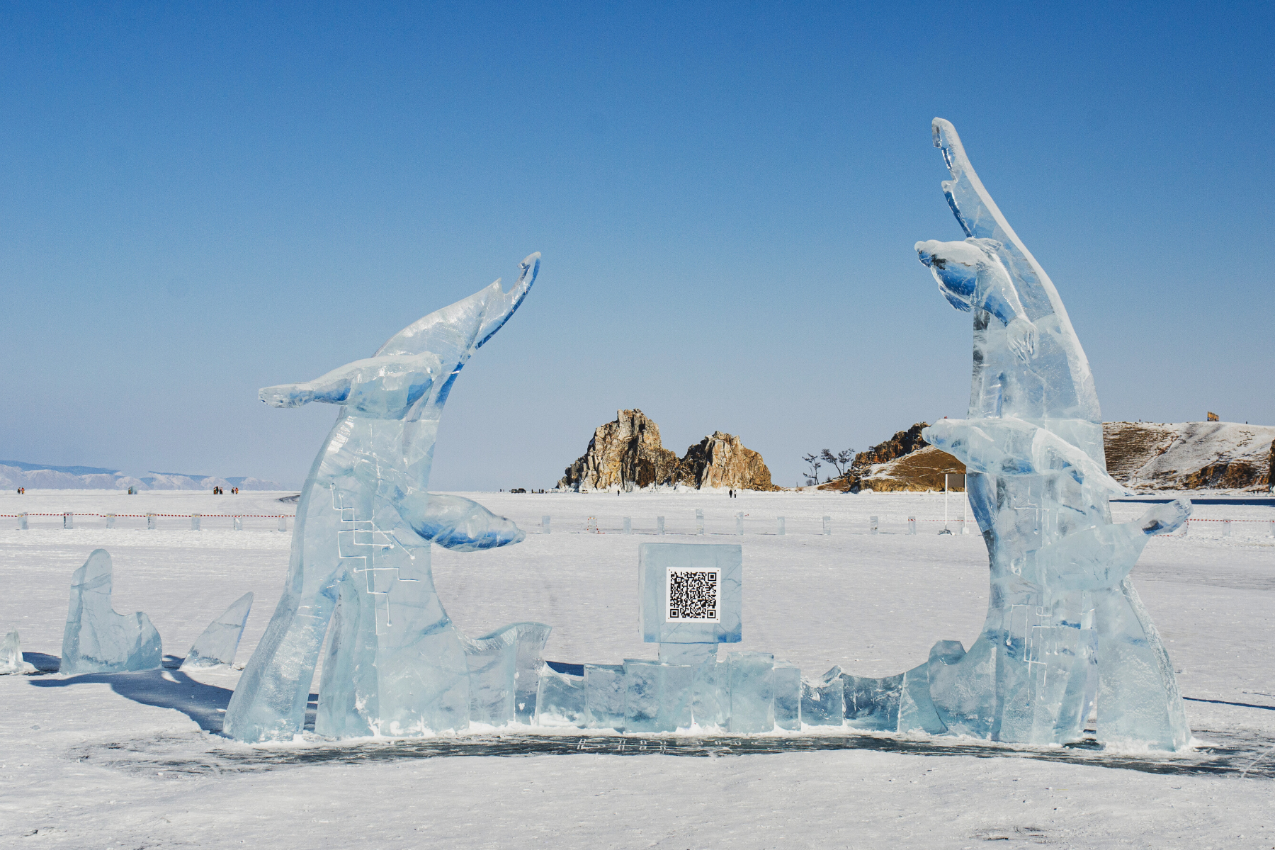 There are “floating” sculptures, which are made by suspending blocks of ice above water.