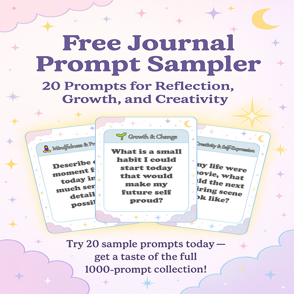 If you’re unsure where to begin, the Free Journal Prompt Sampler offers a welcoming entry. With 20 prompts across themes like joy, courage, gratitude, and self-care, it provides a taste of guided reflection without overwhelm.