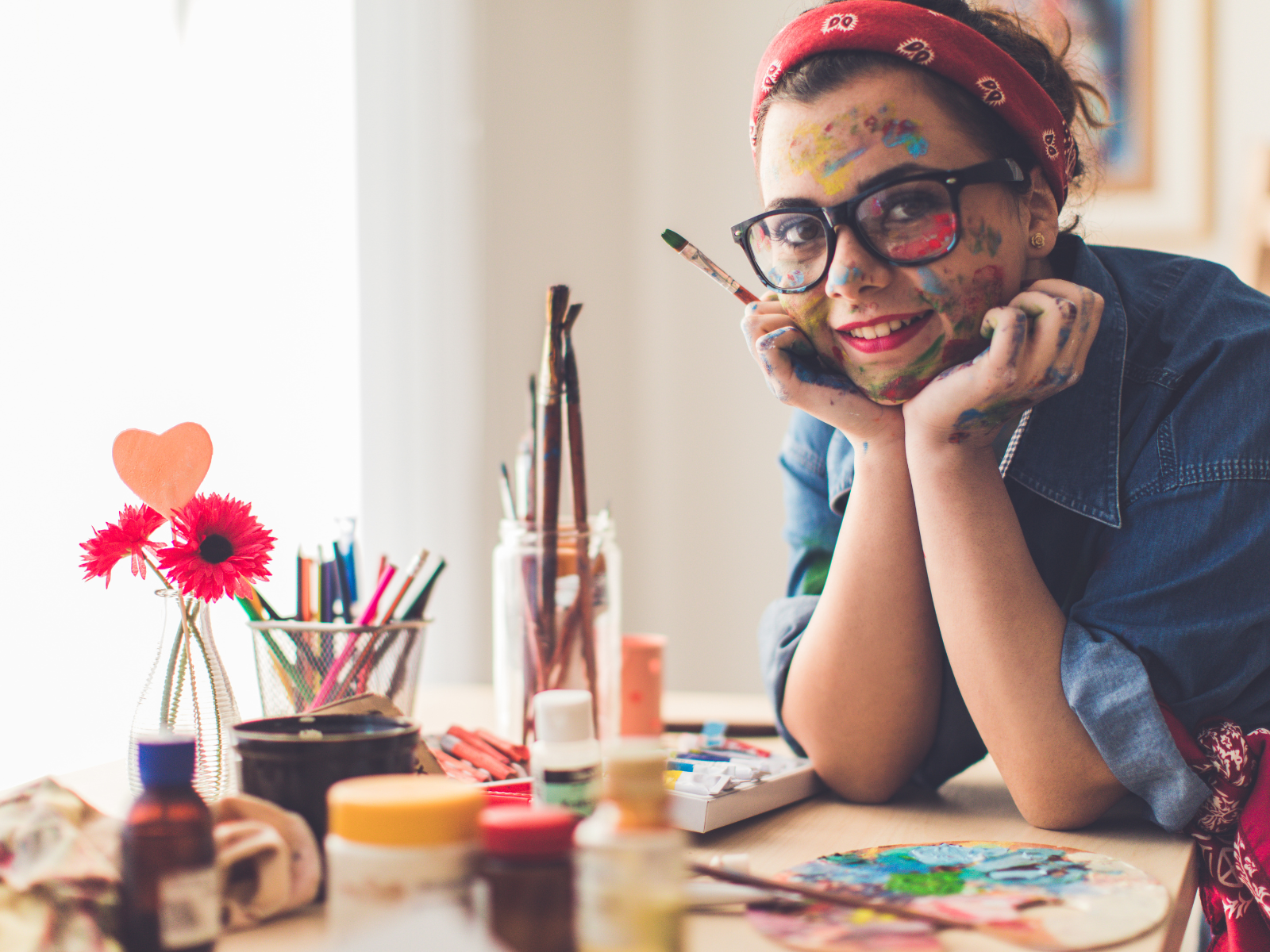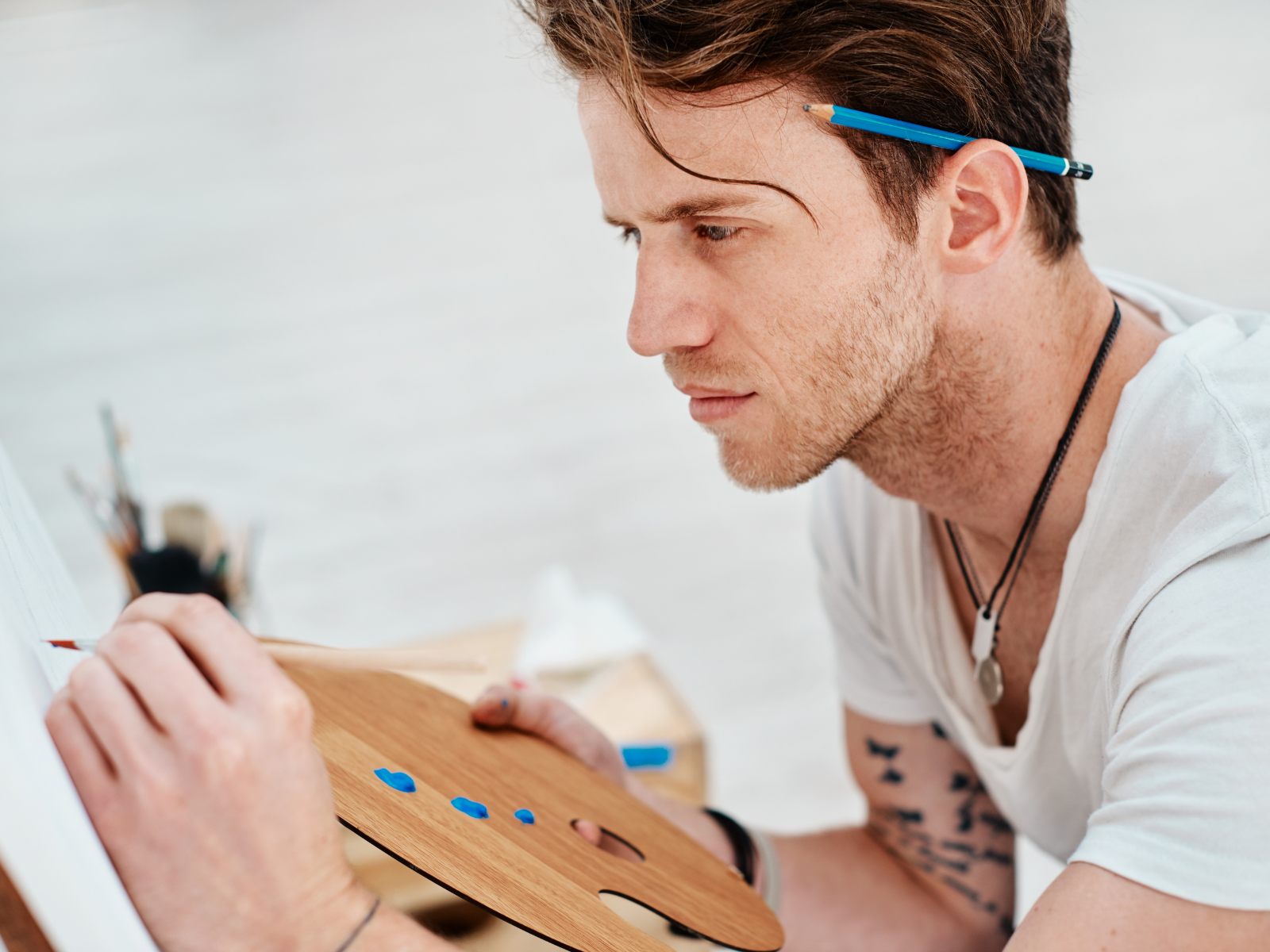 Pick up a pen, a paintbrush, or an instrument.