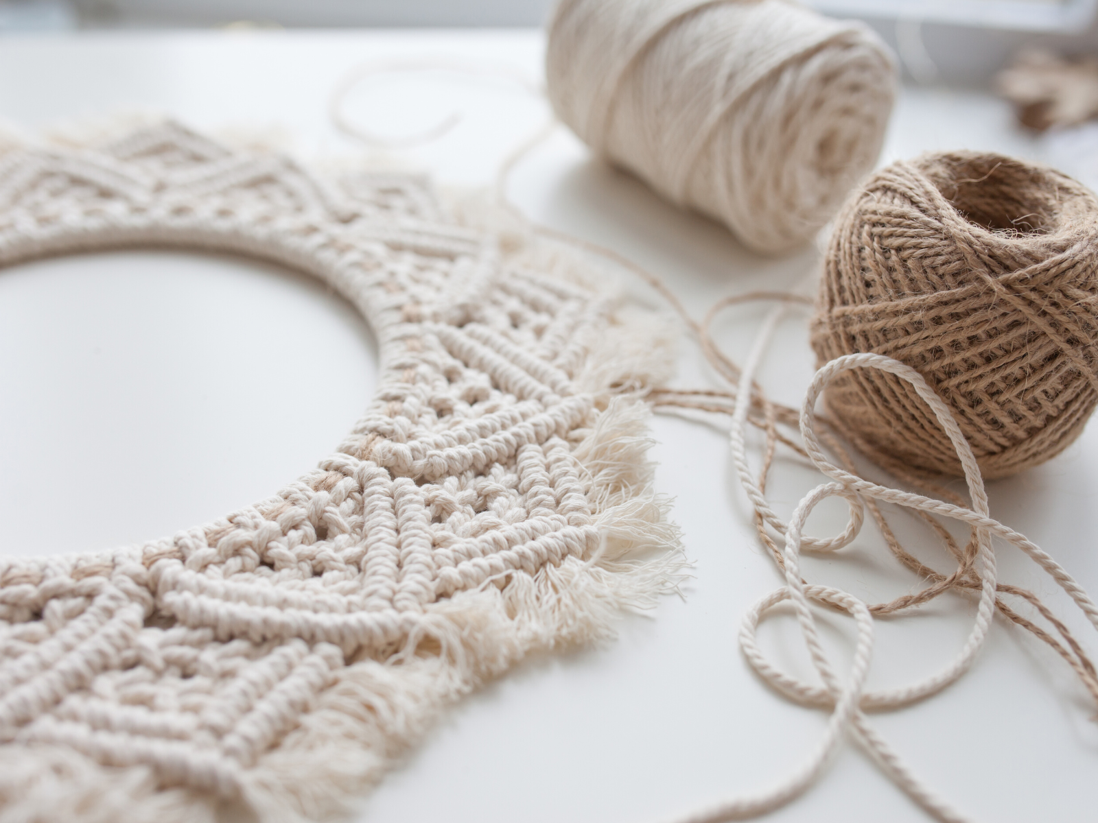 Macramé is a type of textile art formed by knotting cords, threads or strings together to create intricate patterns and designs.