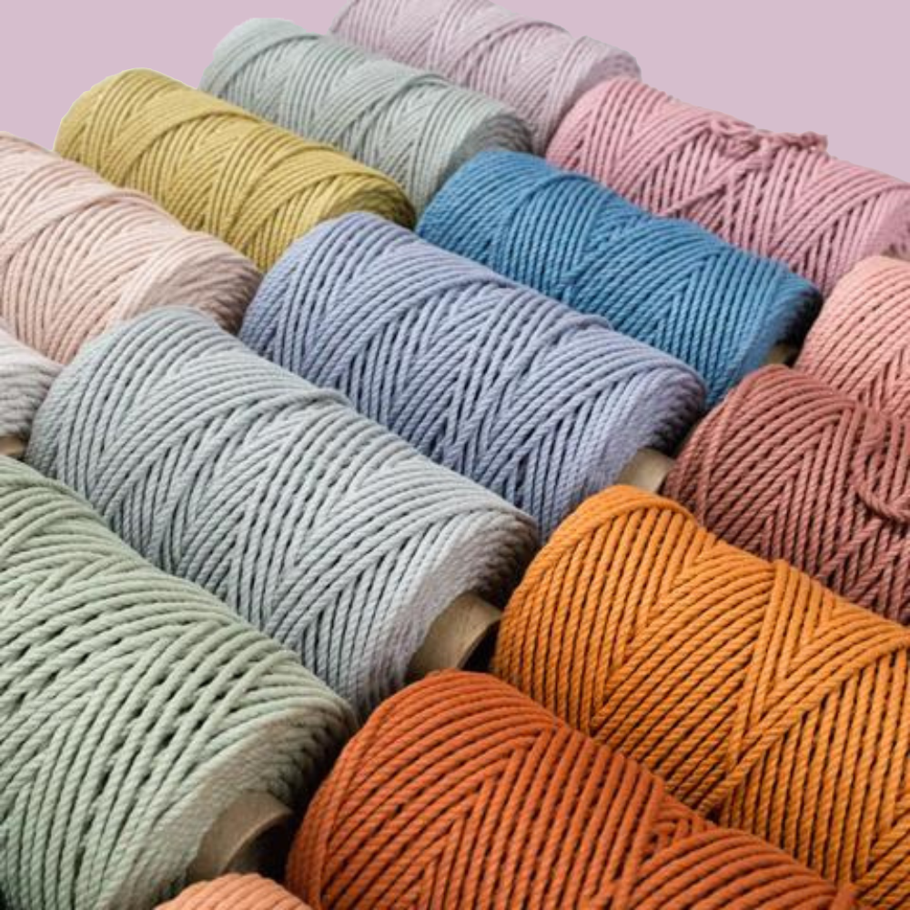 Macrame rope is also available, which is a thicker type of yarn that can be used to create larger and heavier pieces such as plant holders.