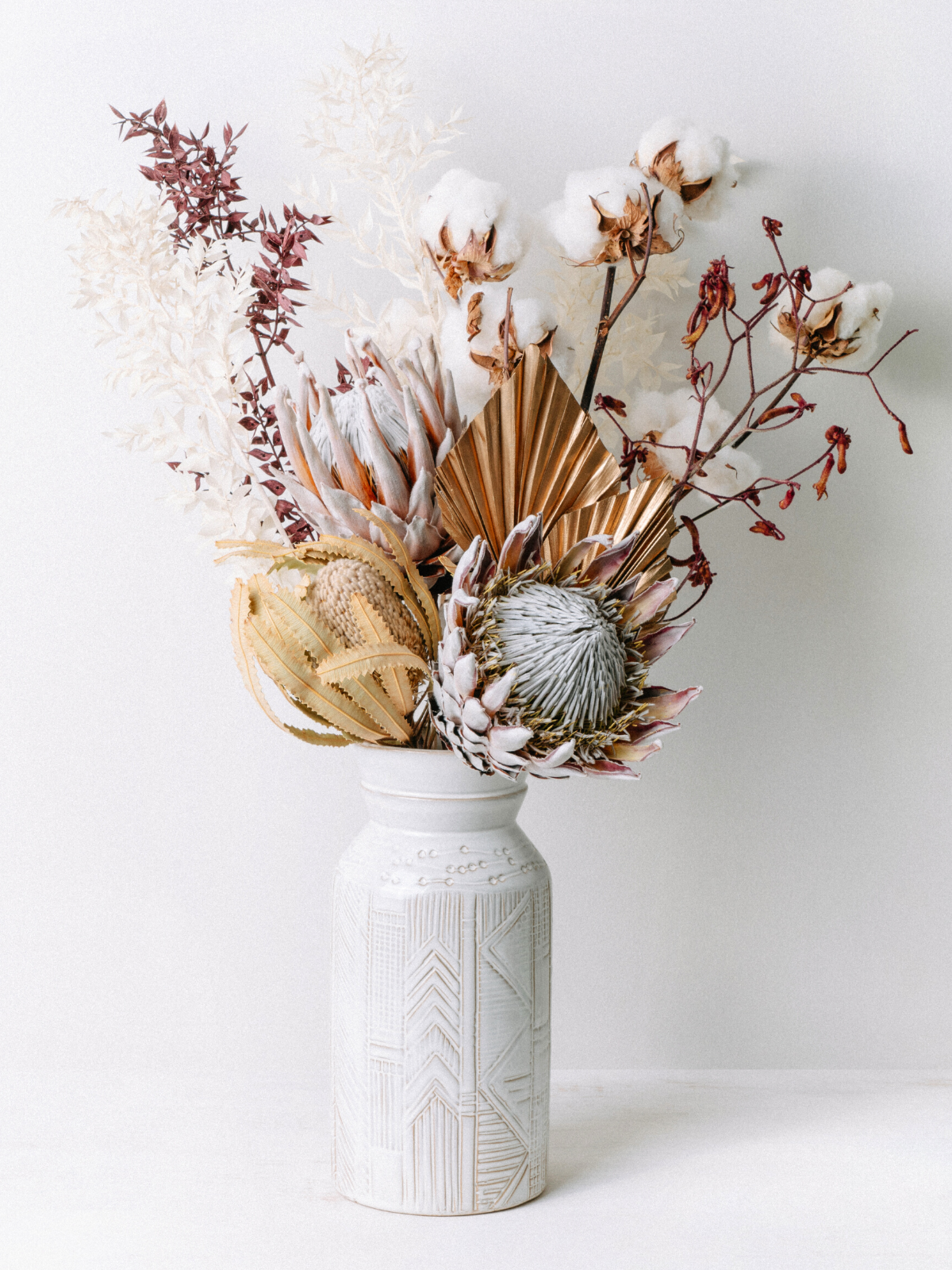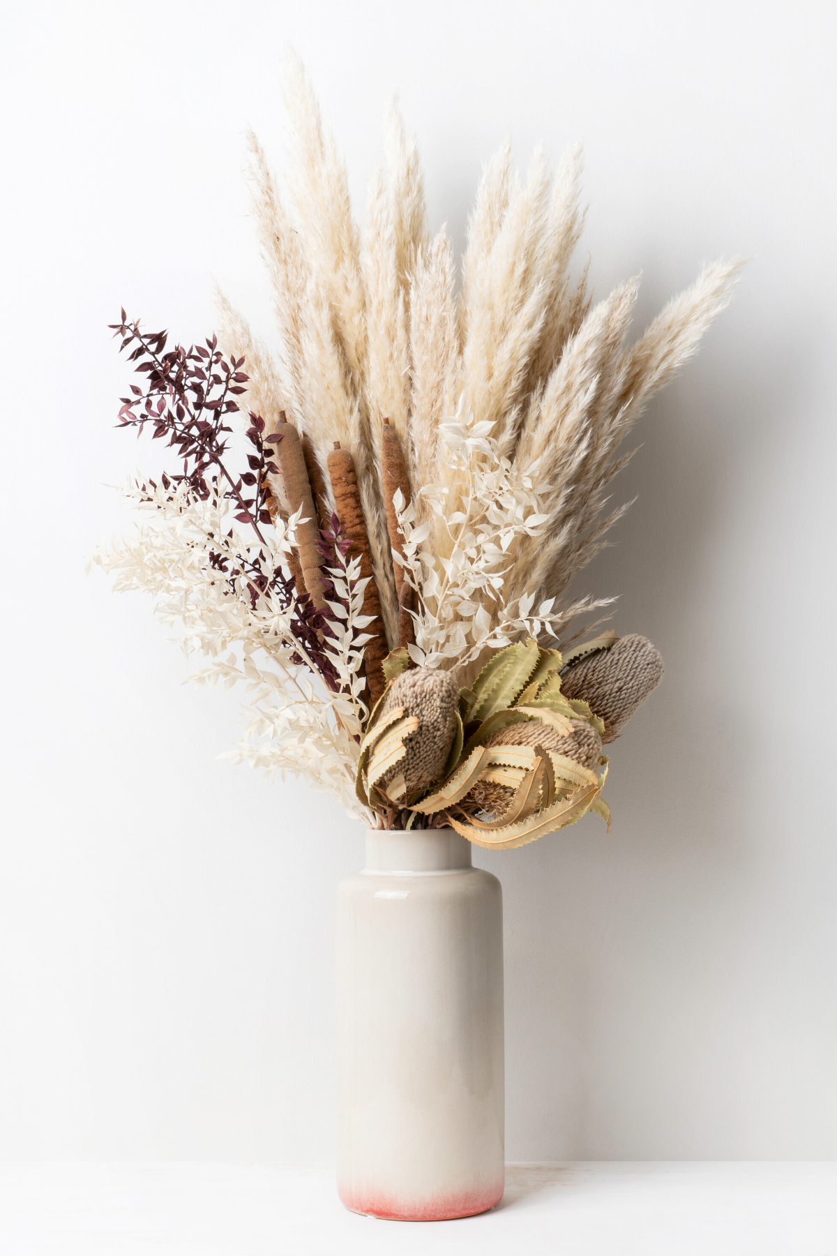 This is where creativity comes into play; there are endless possibilities when it comes to styling dried flower arrangements!