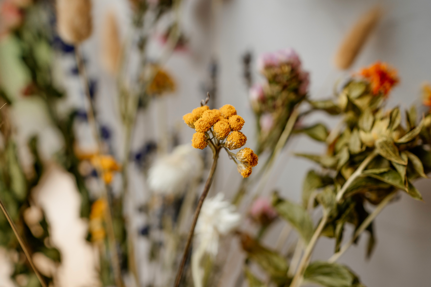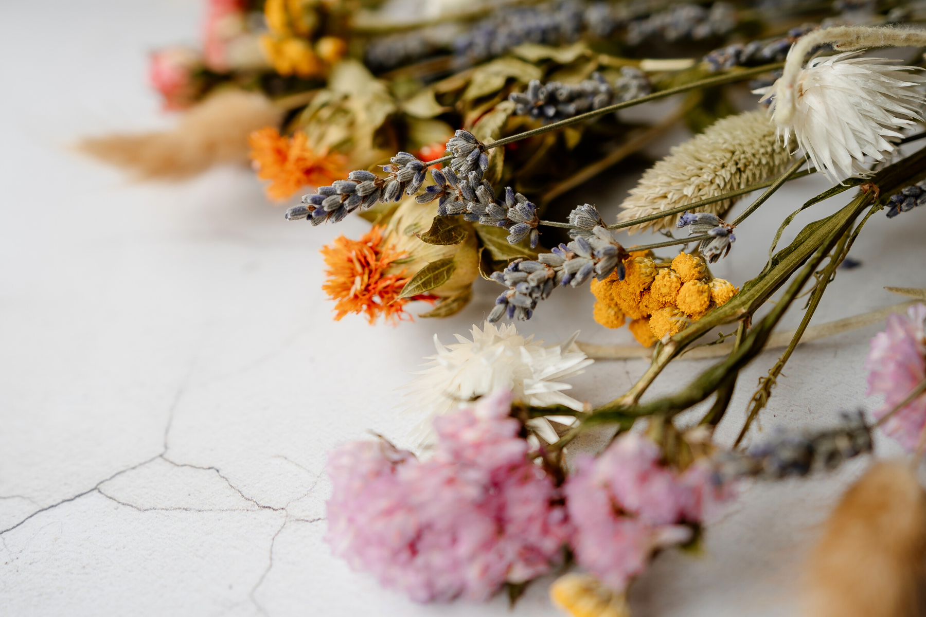 The first step to creating arrangements of dried florals is choosing the right types of flowers.