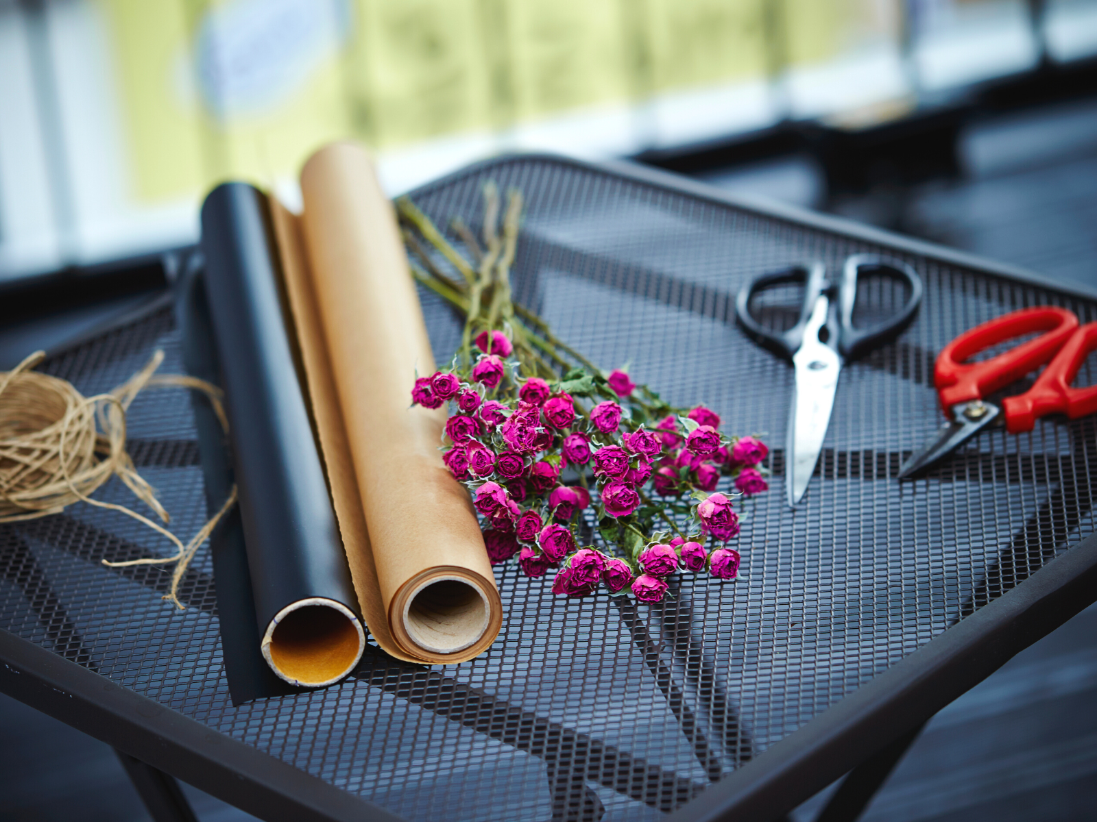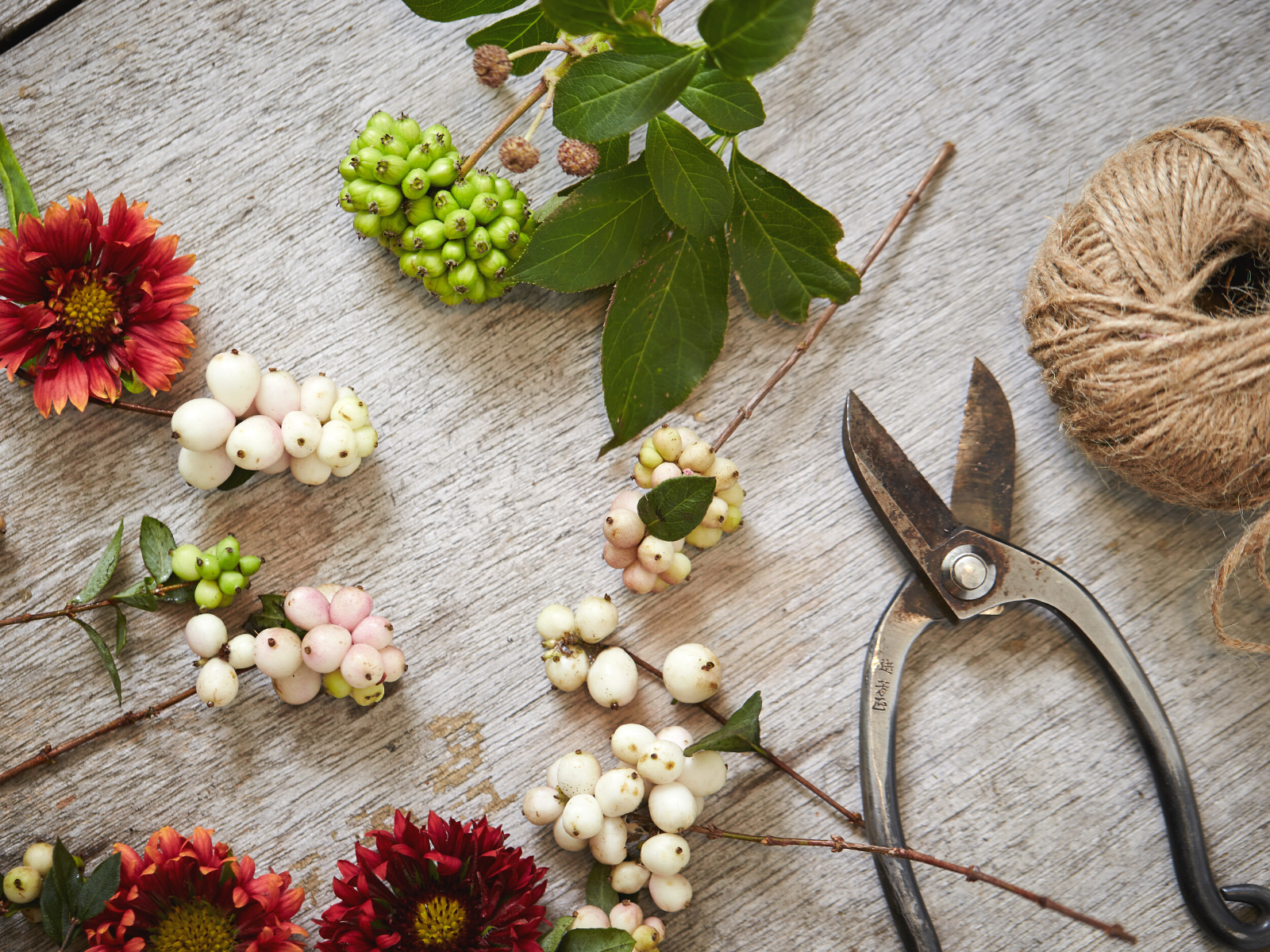 You'll also want to grab some floral wire or twine, scissors or florist snips (if you don't already have them), and a shallow vase or bowl (depending on what type of arrangement you're going for).