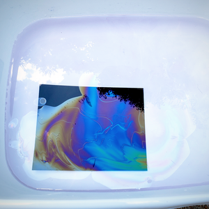 You can use clear polish to create incredible iridescent art using water and black paper.
