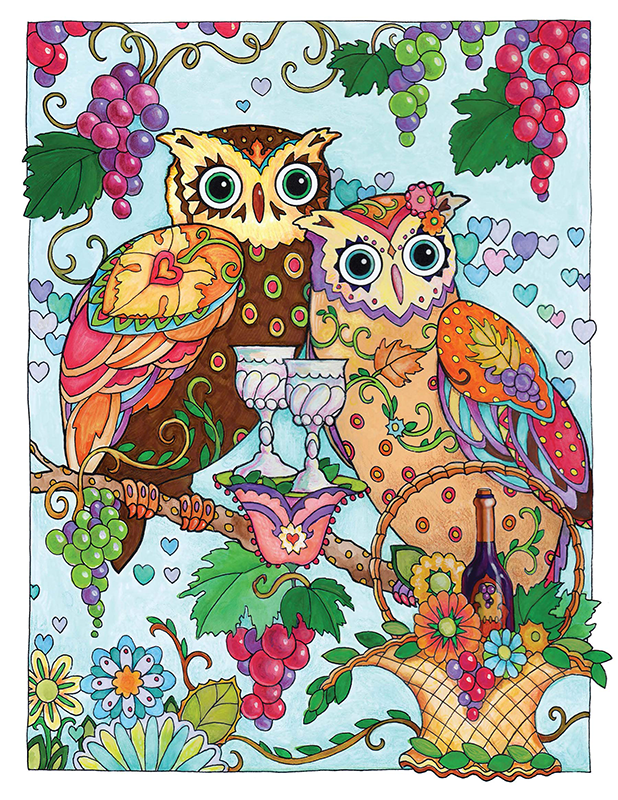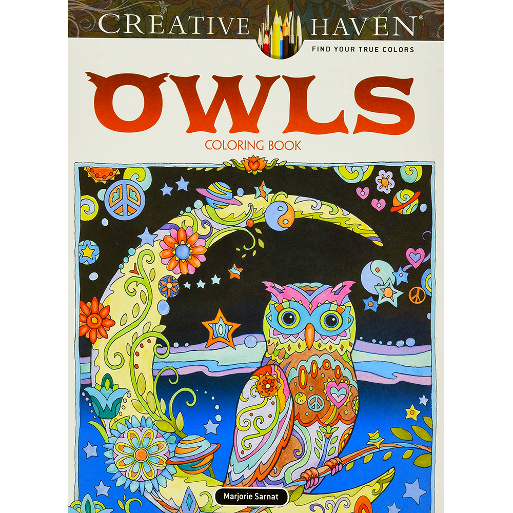 Their popular designs include animals, nature, fantasy, mandalas, and more. Illustrated by award-winning mixed-media artist Marjorie Sarnat, this owl coloring book is sure to provide hours of enjoyment.