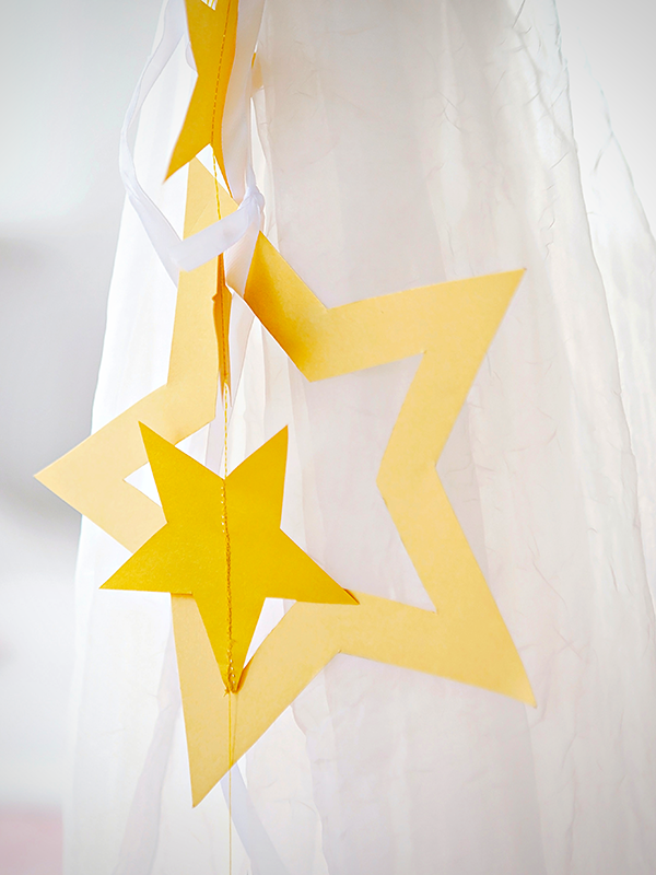 Start off with easy paper crafts, like a paper chain, and slowly move on to more complex projects.