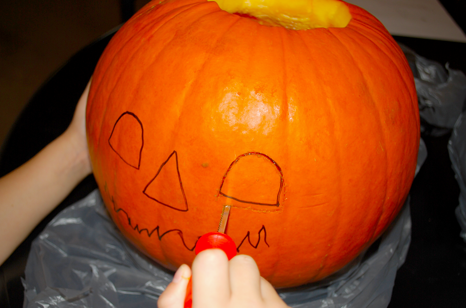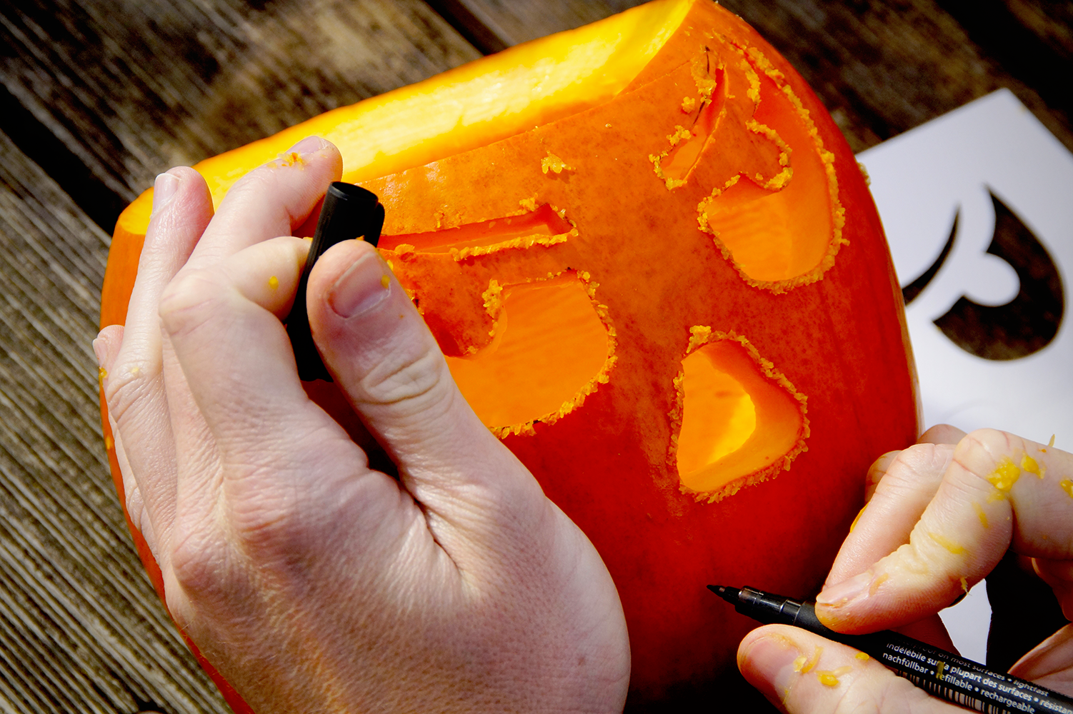 Once you've settled on a design, use a sharpie to trace it onto your pumpkin.