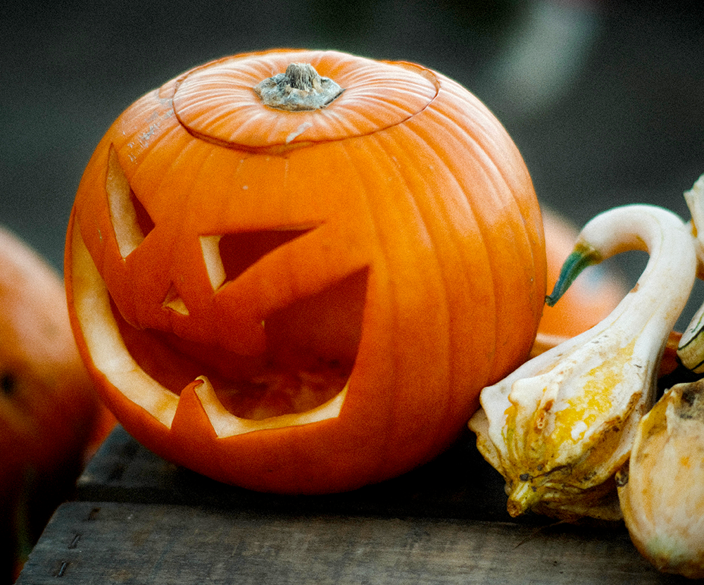 For a fun twist on the traditional jack-o'-lantern, try carving a silly face or funny scene into your pumpkin.