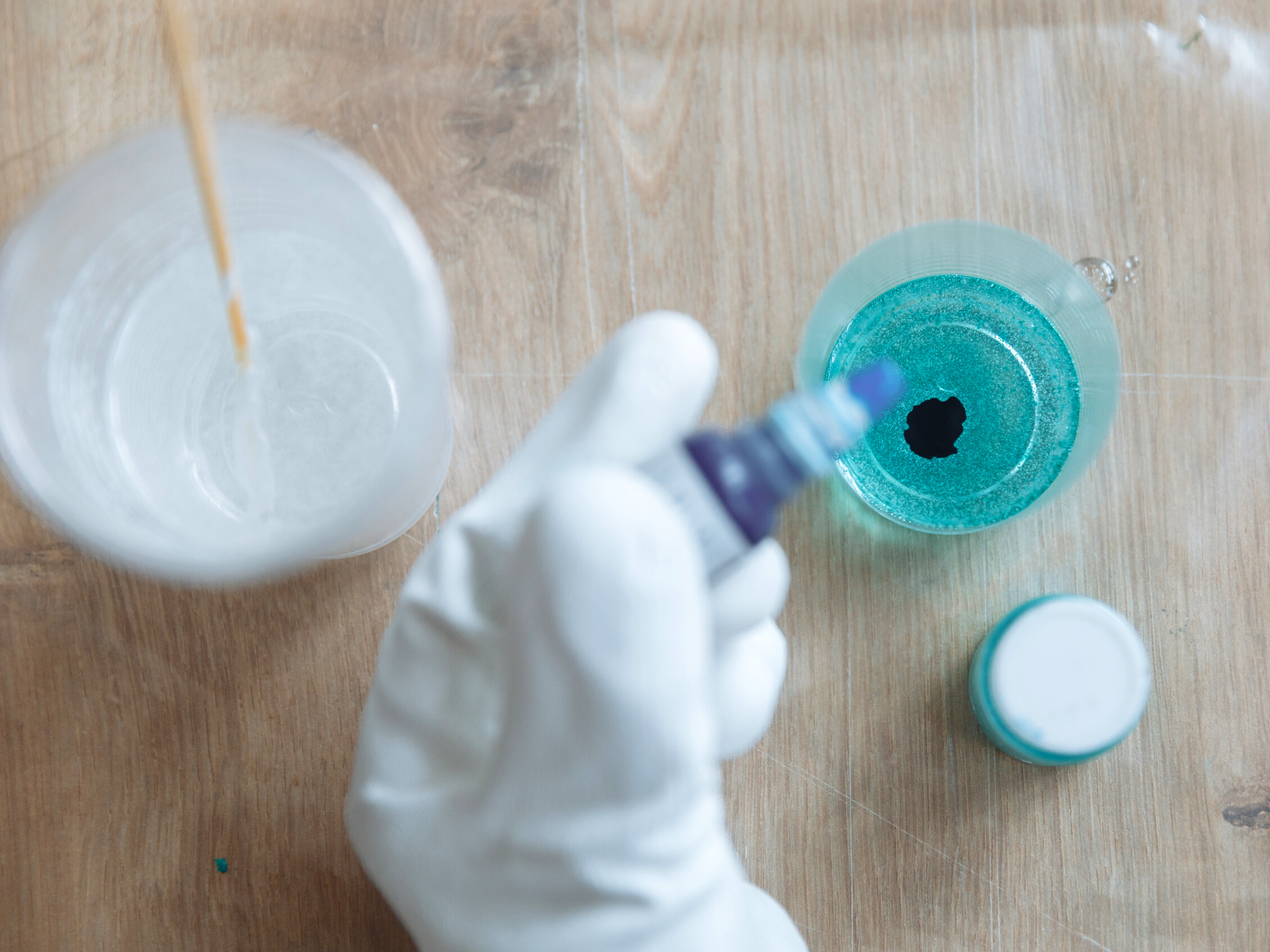 If you want a clear resin, don't use a wooden stirrer, since it can introduce impurities into the mix, so use a plastic or silicone stirrer instead.