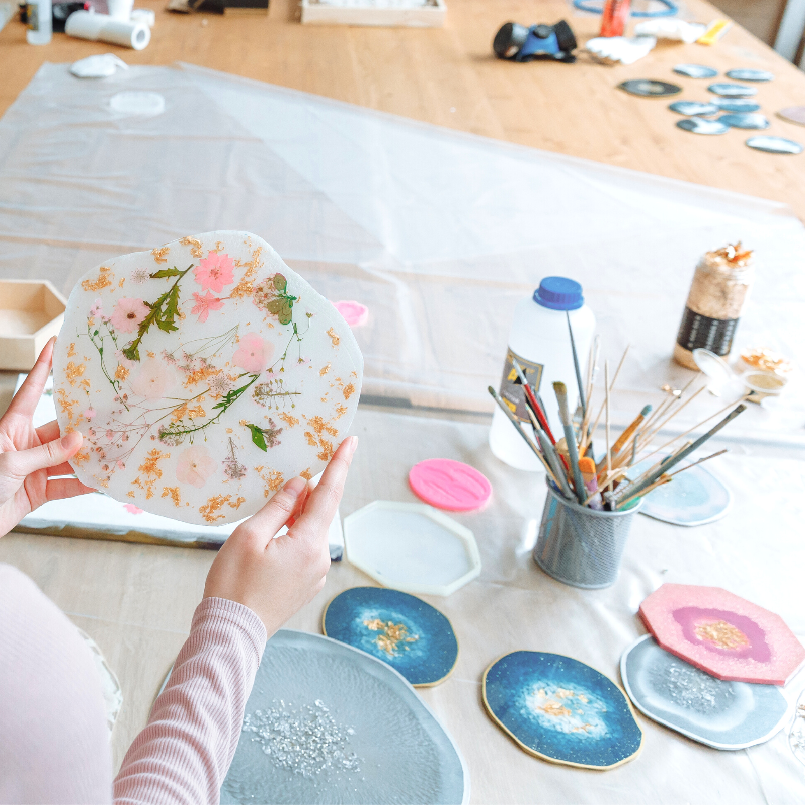 Resin art can be a messy process, so you need to prepare your workspace carefully; spilled resin can be difficult to clean up and can even damage furniture or floors, so make sure you have plenty of space and a protective covering.
