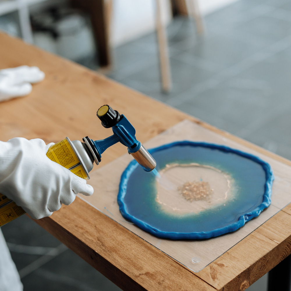 To encourage these cells to form, use a heat gun or blowtorch to gently heat the resin after you’ve poured it.