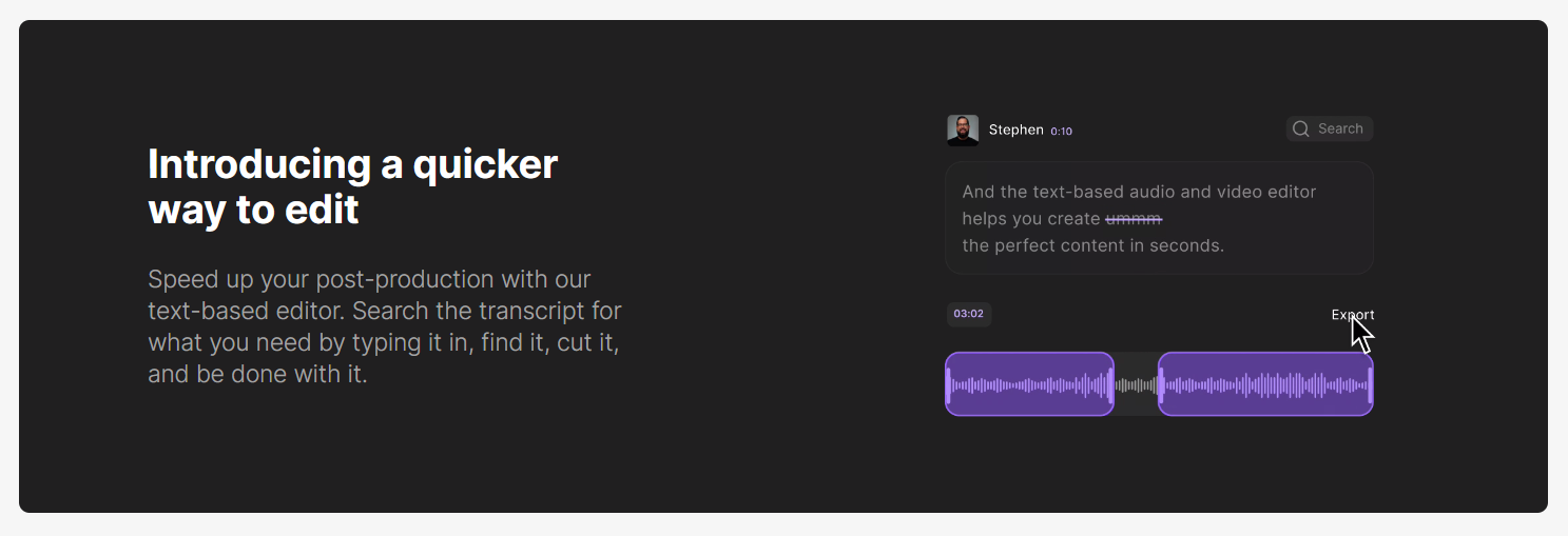 It's also a powerful editing tool that allows you to add natural-sounding transitions, trim audio and video clips, and mix and match content to create polished final products.