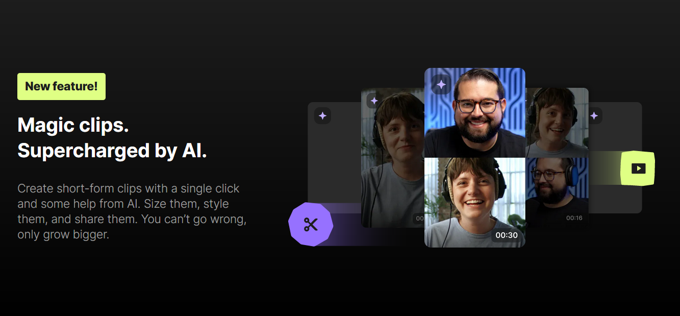 This supercharged tool lets you create short-form clips with a single click; you can easily create short-form clips from your content, perfect for sharing on social media or as promotional material.