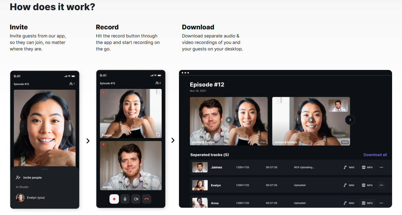 The platform records locally in 4K video and 48kHz WAV audio, making you feel like you're in a high-end studio, even if you're recording from your living room.
