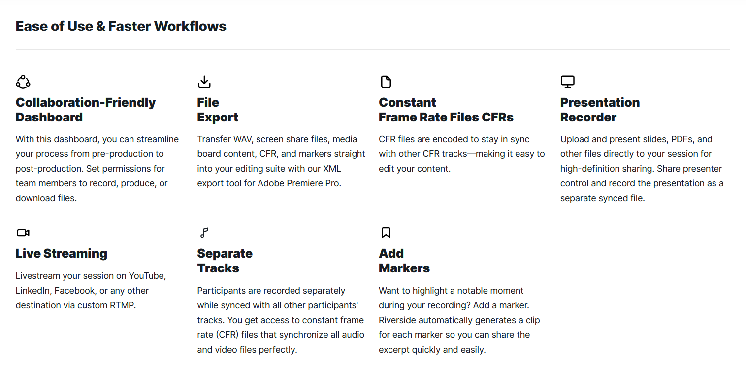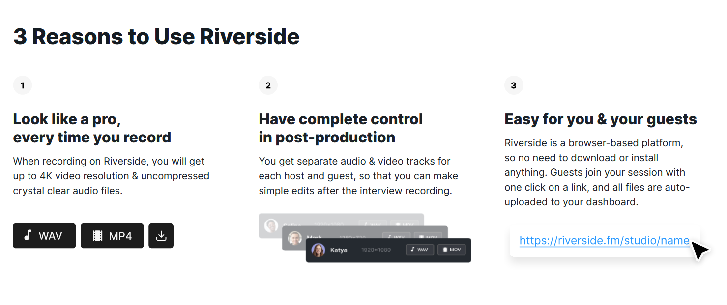 One of the biggest advantage of using Riverside is the fact that it's designed for creators of all skill levels.