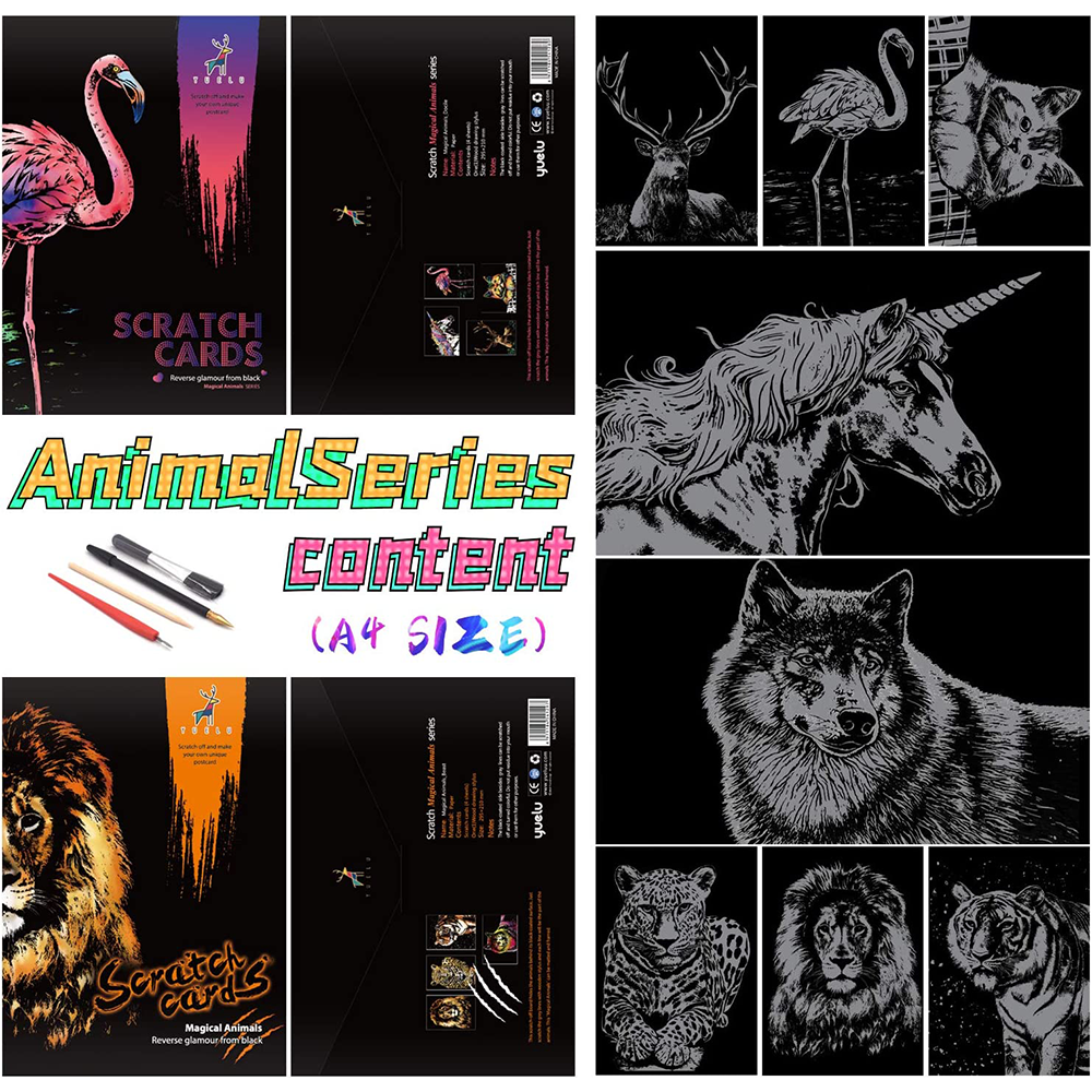 This scratch art paper comes with designs already printed on it, so all you have to do is simply scratch off the gray sketch to reveal the beautiful animal pattern.