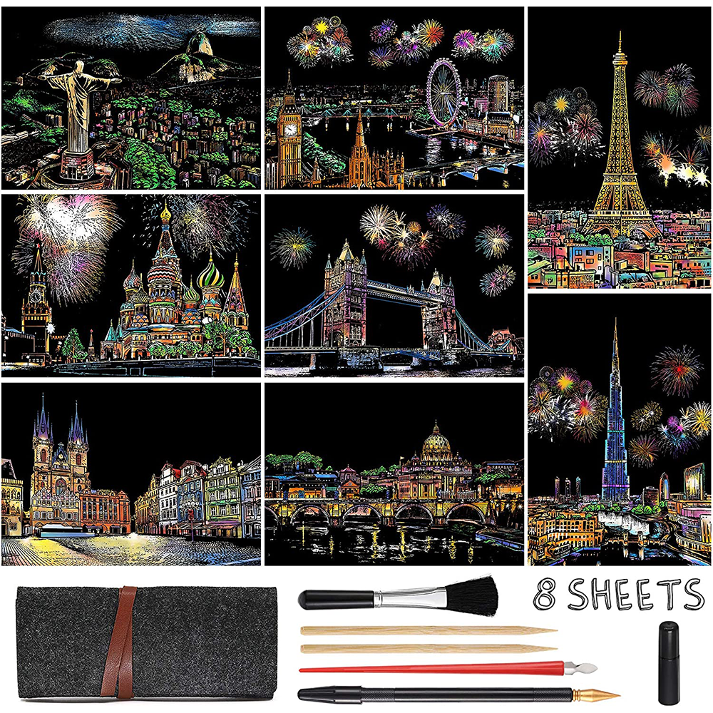 This scratch art kit is great for children and adults, making it the perfect gift for all creators of all skill levels and ages.