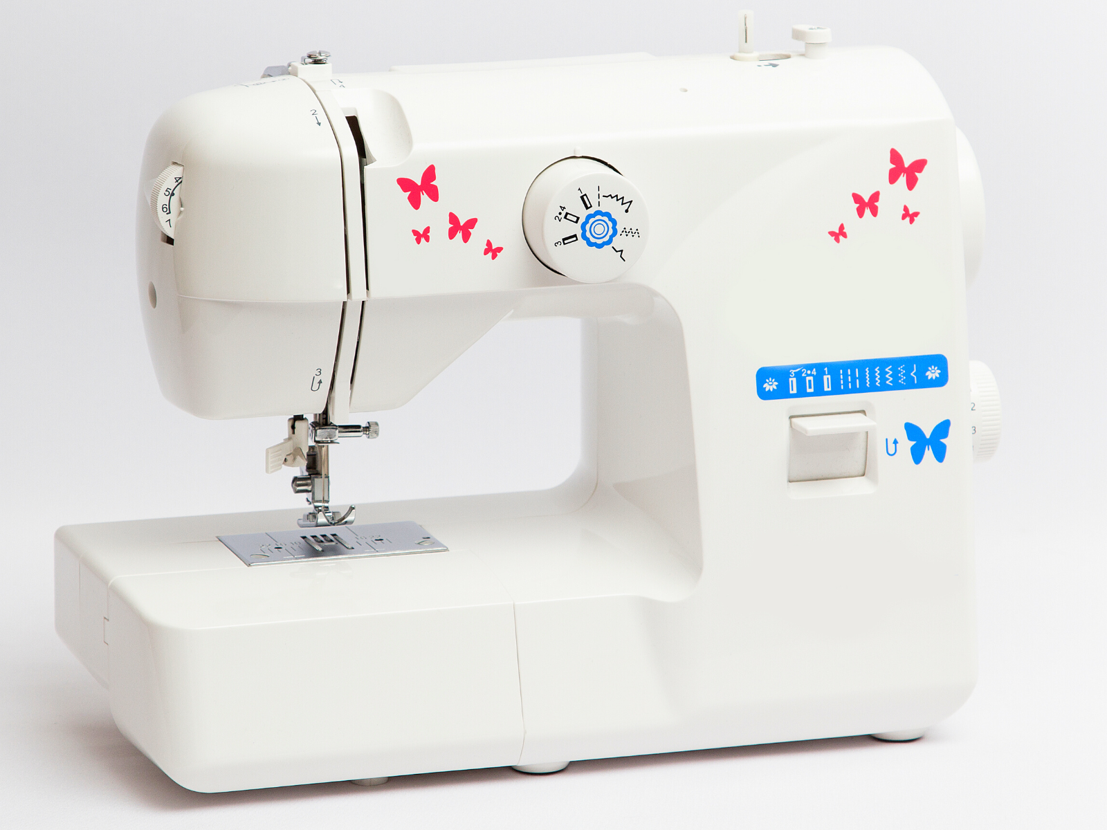 Hone your creativity by playing around with decorative stitch patterns, as well as stretch, zigzag, and straight stitches.