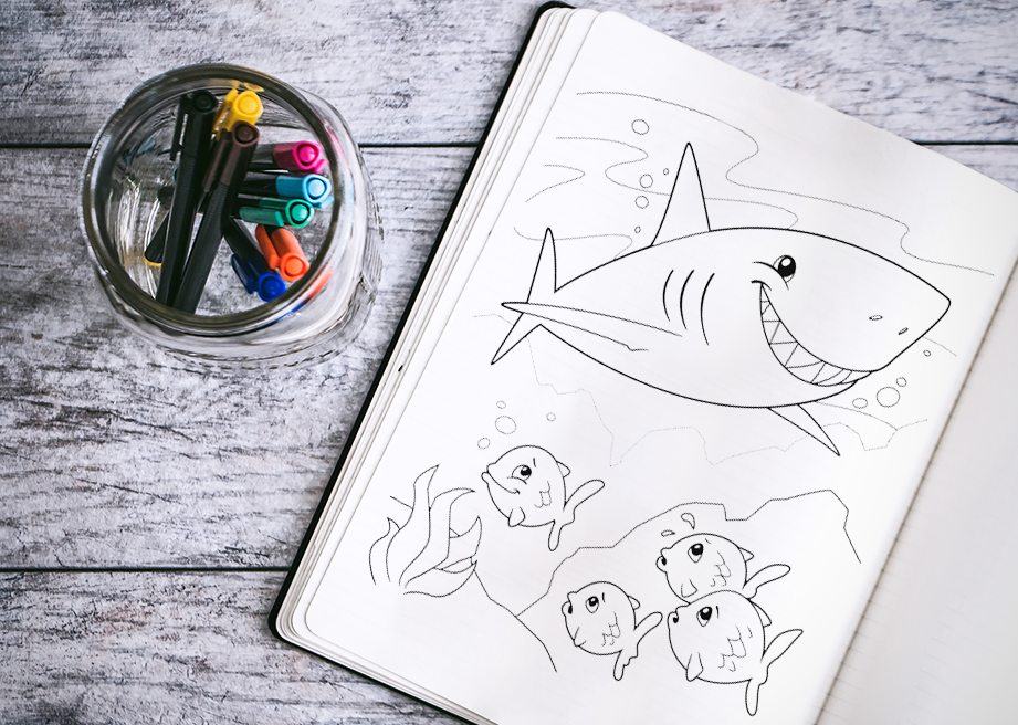 What better way to do that than with a shark coloring book?