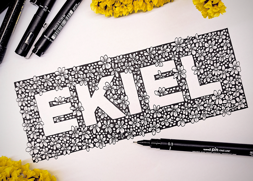 Write down a word using calligraphy or hand lettering and then draw doodles around it; these are fun to use in a bullet journal.