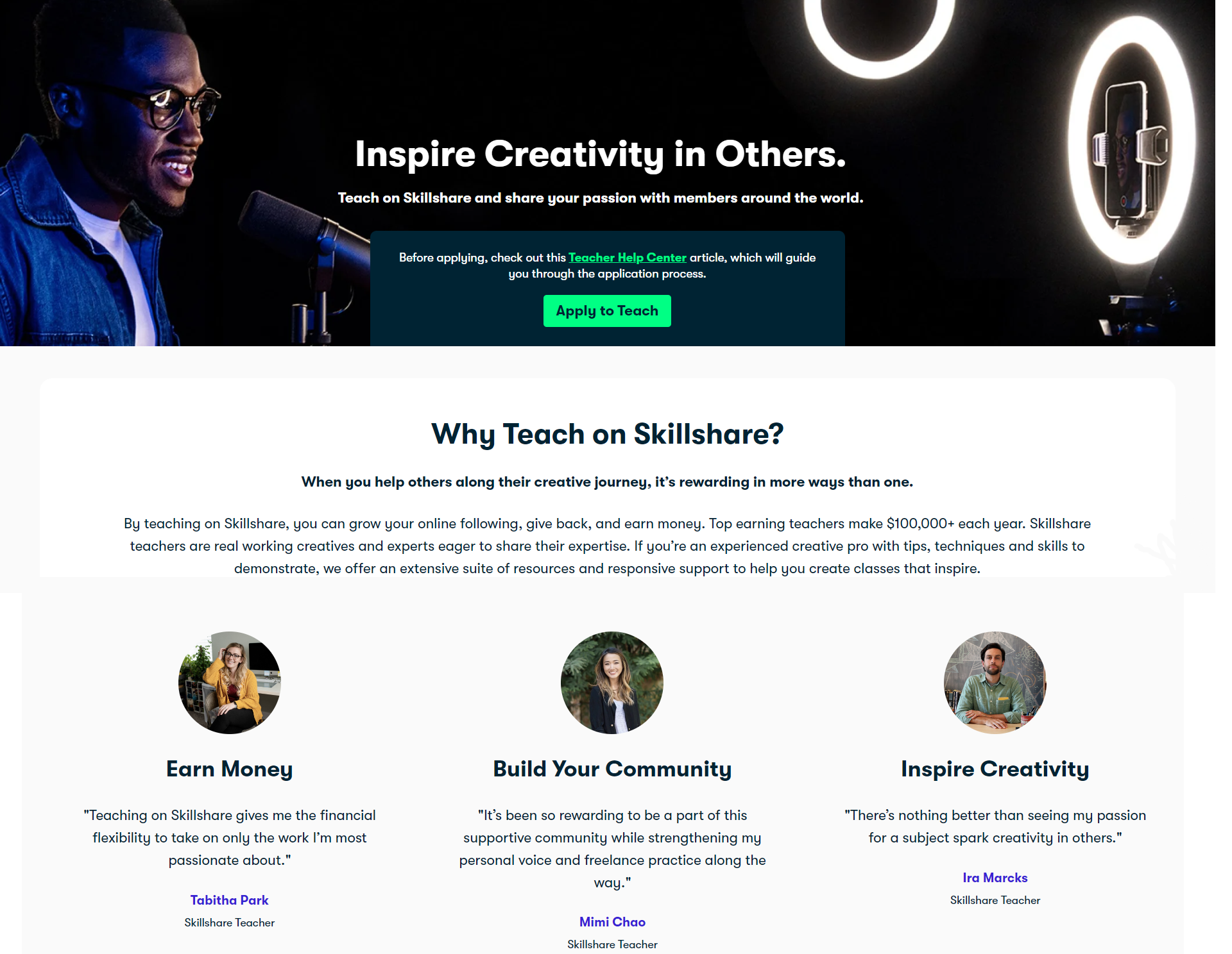 If you're looking for ways to make money from your skills, Skillshare also has a very generous affiliate program.