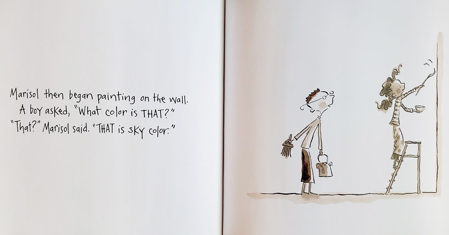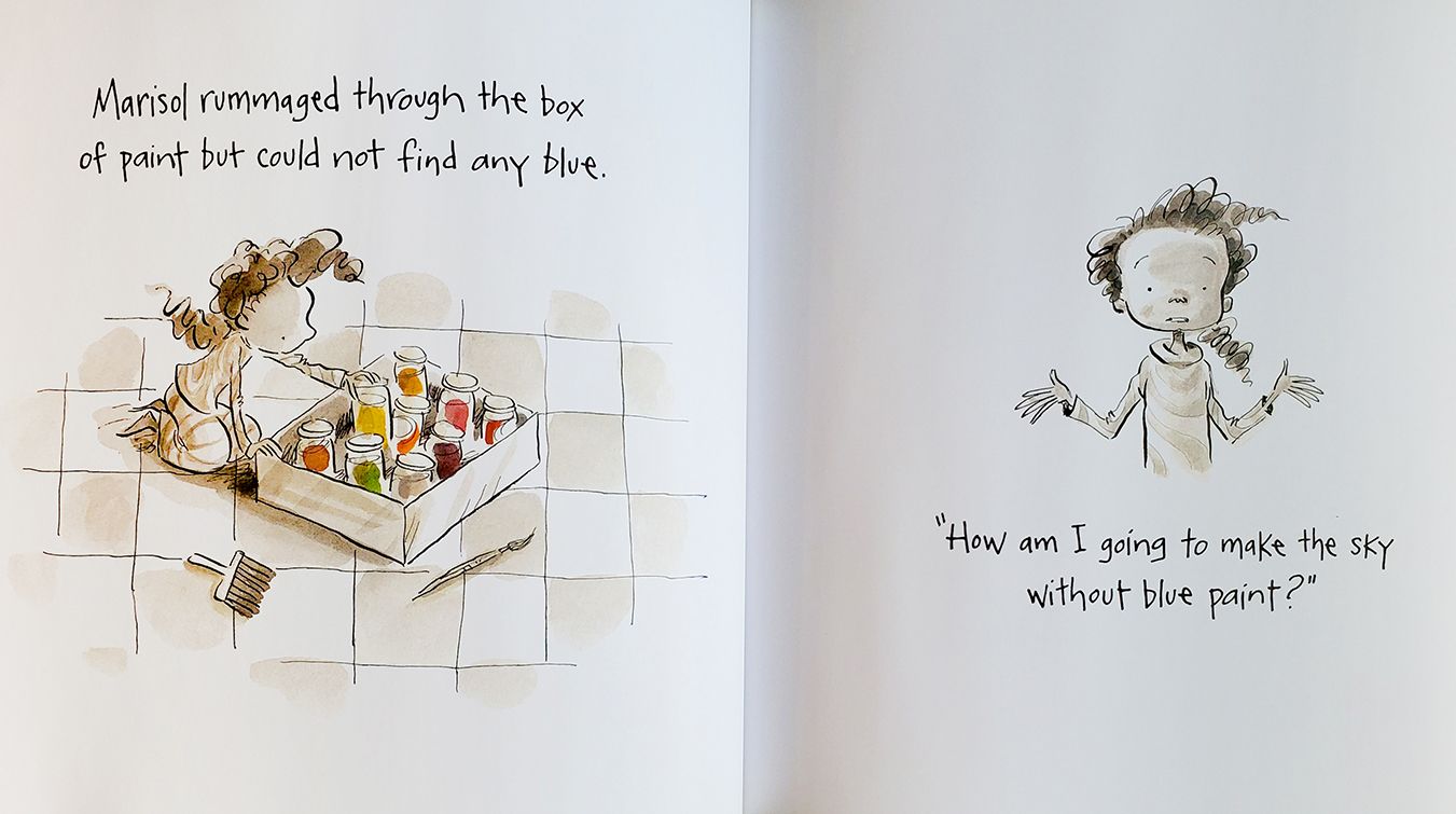 As the story progresses, readers get an inside look at Marisol's creative process as she must overcome the challenge of painting the sky.