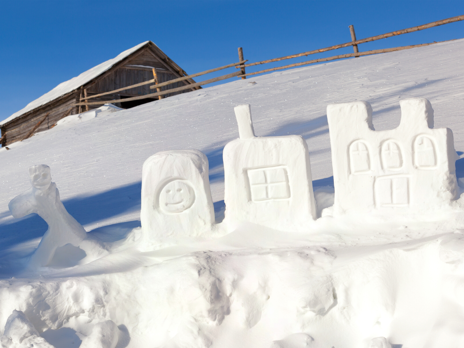 Snow angels, snow people, forts, snow castles, an animal snow sculpture, and tunnels are just a few examples of what can be made from snow.