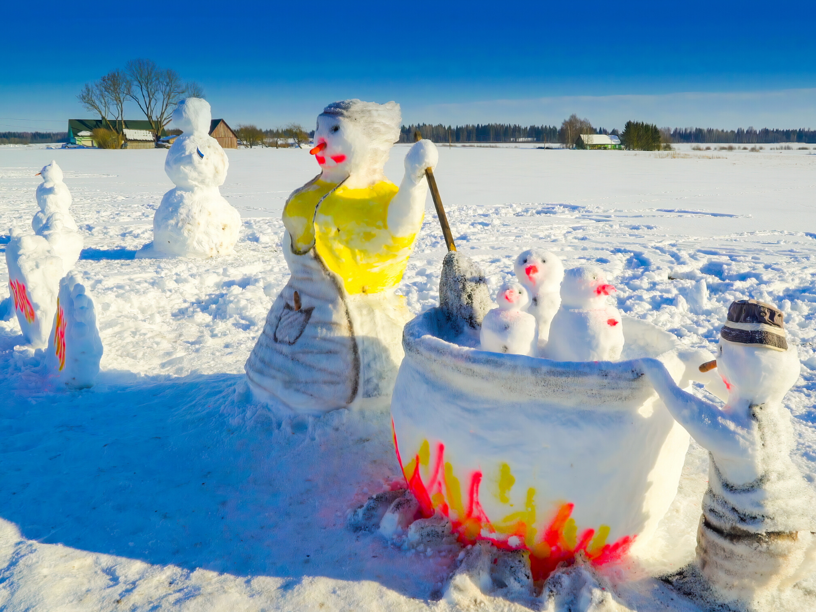 It can involve anything from a simple snowman to more complex, unique figures, such as snow animals and other shapes.