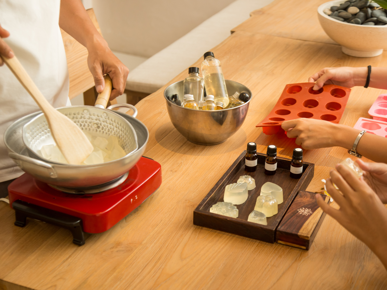 Soap making is a science, and it's important to measure ingredients accurately and follow the process step-by-step.
