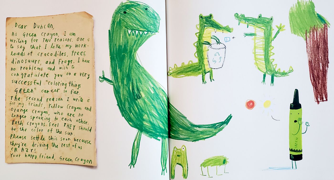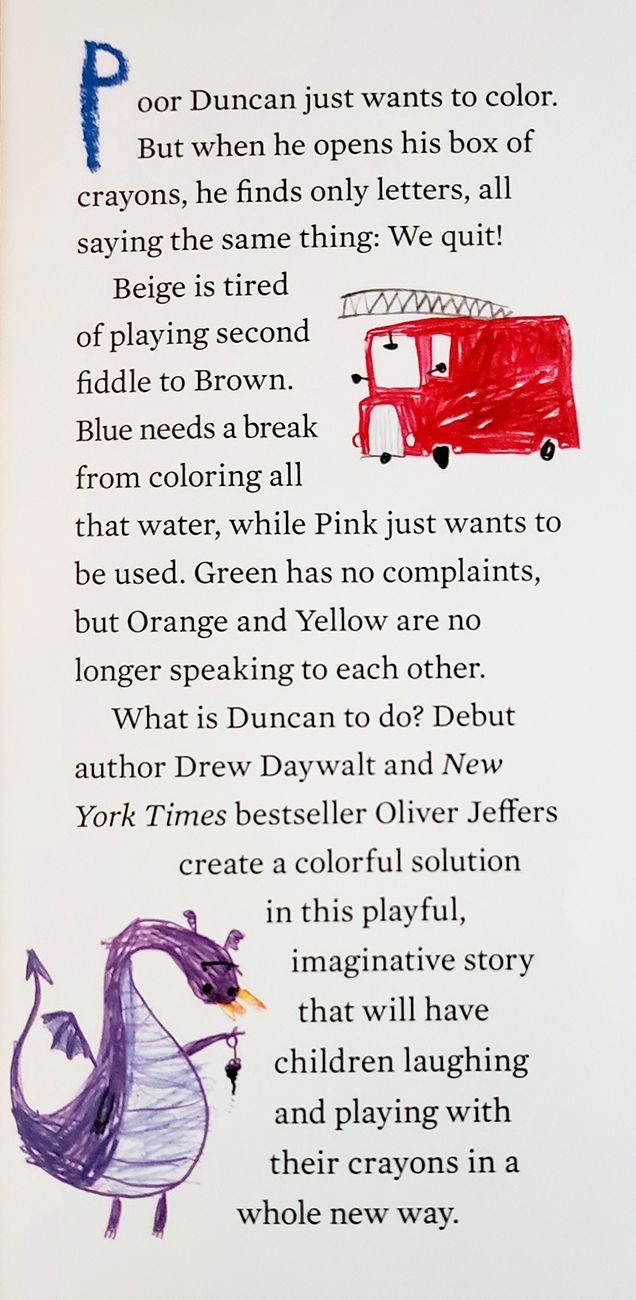 The Day the Crayons Quit introduces us to Duncan, a young artist whose opens up his crayon box to find only letters!