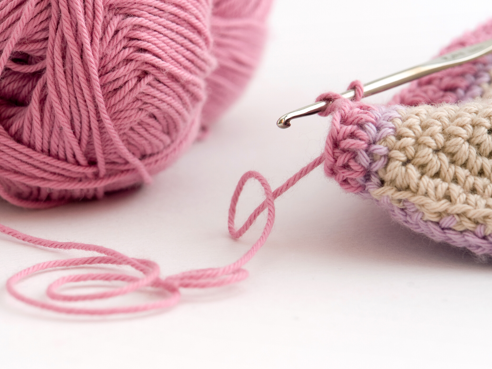 To join yarn seamlessly, tie a small knot and pull the tail through the loop on your hook.