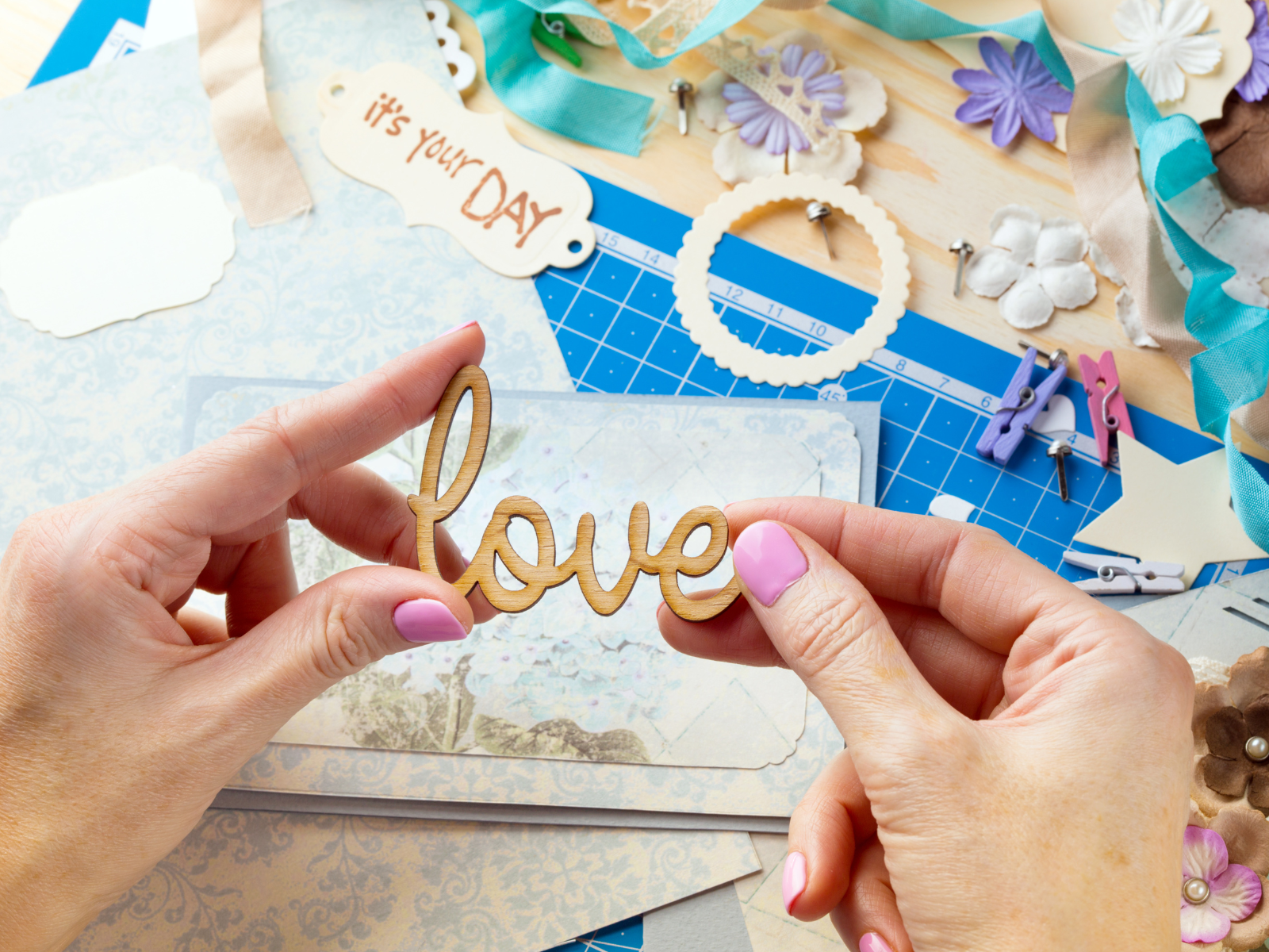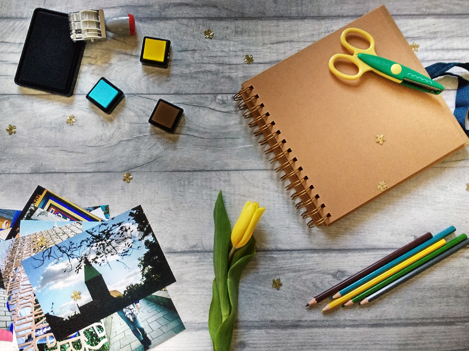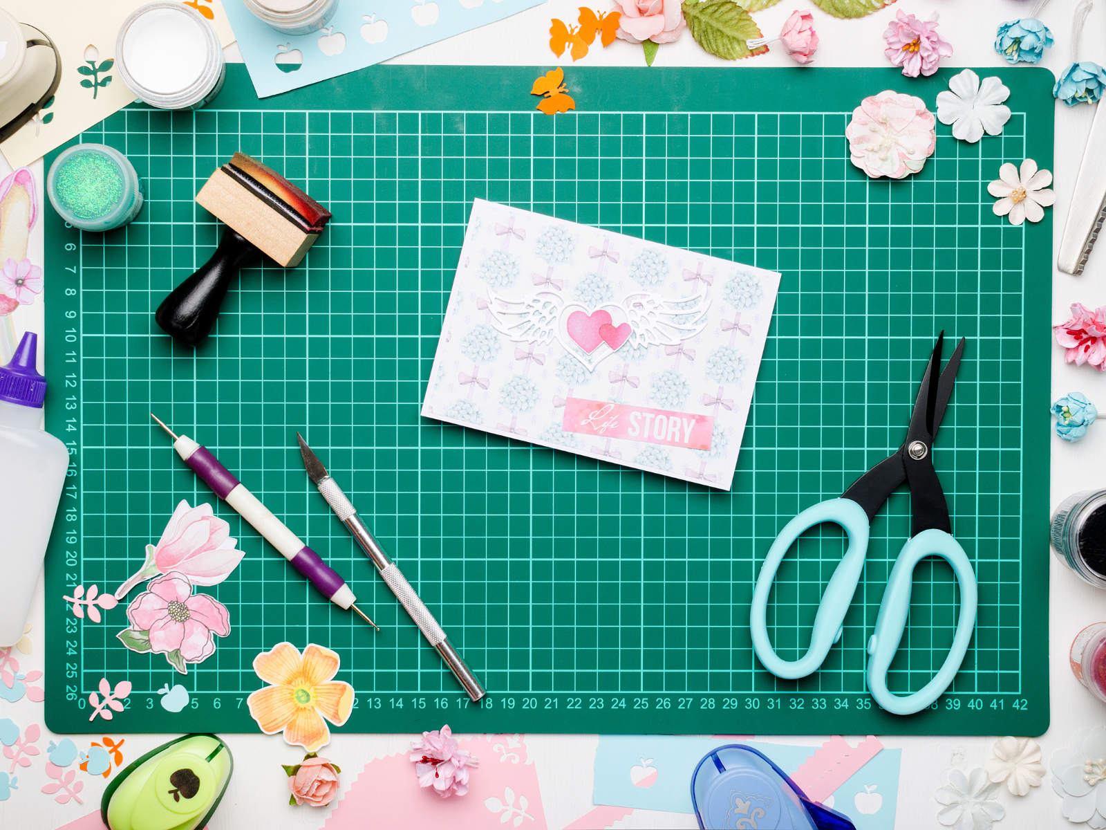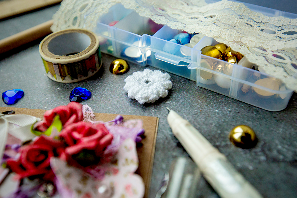 Quality tools make all the difference when it comes to scrapbooking, so invest in a paper trimmer, a good pair of scissors, and high-quality adhesive, like double-sided tape or hot glue.