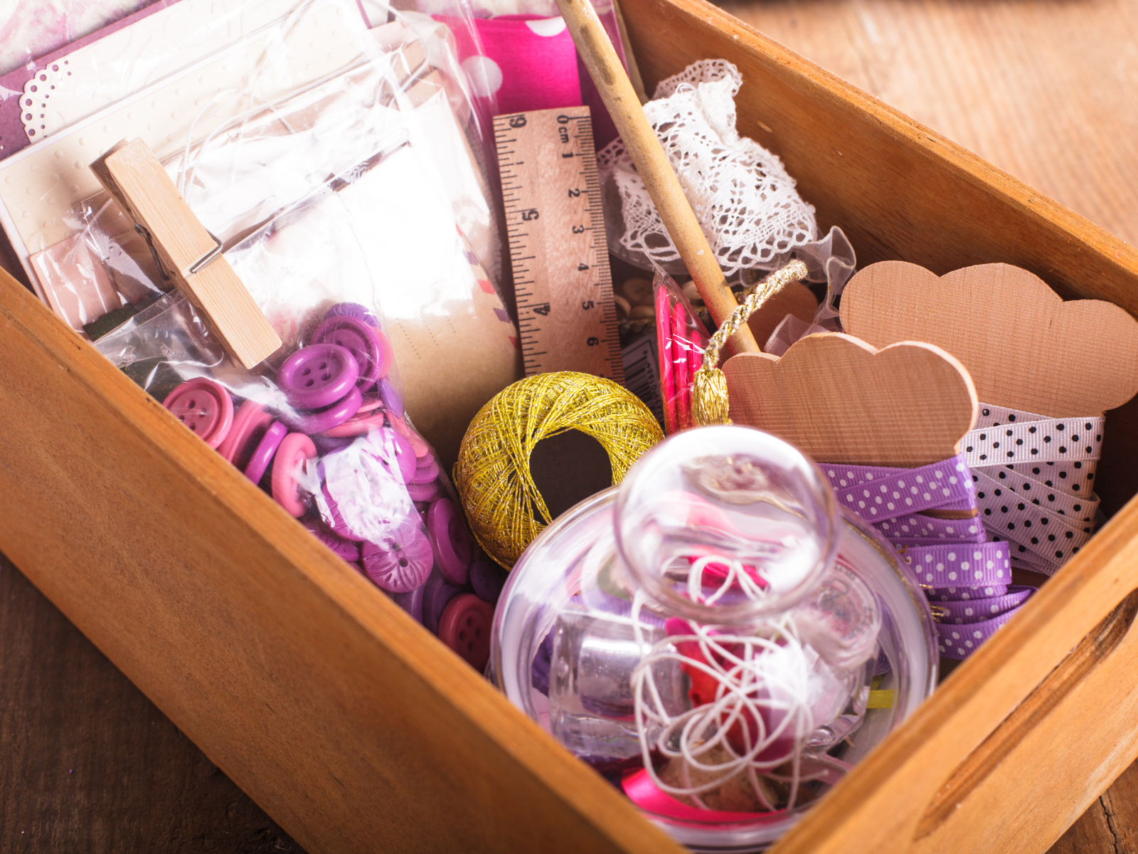 Invest in some storage containers, label everything, and keep your workspace tidy.
