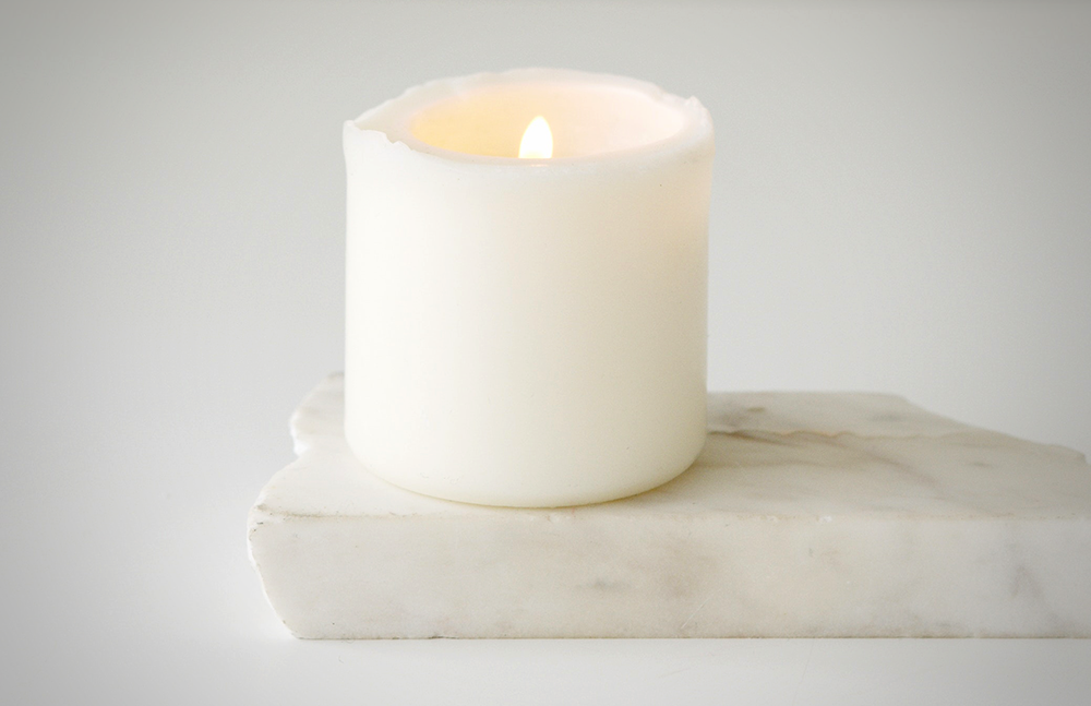 This type of candle is made from beeswax, paraffin wax, or a combination of the two.