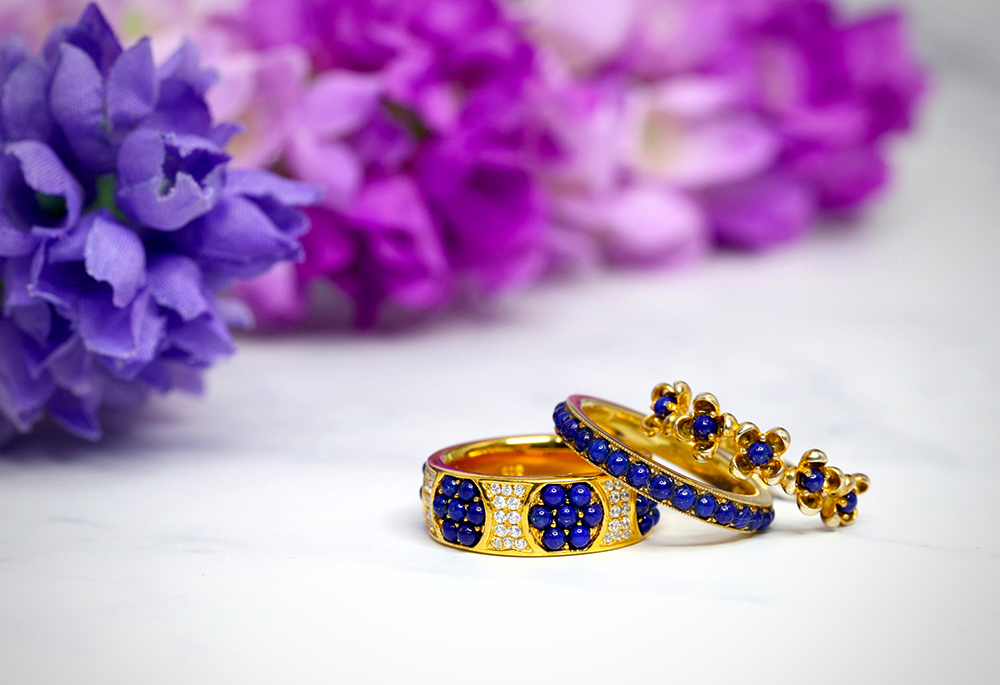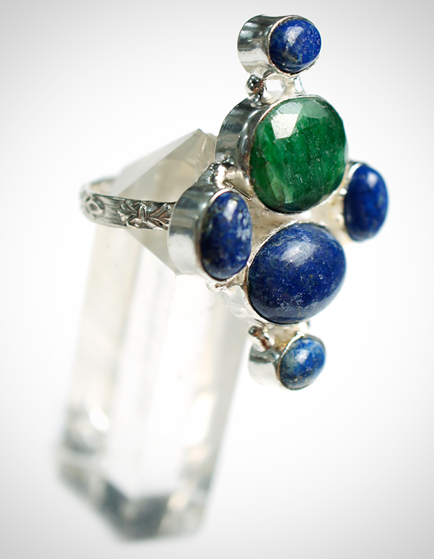 One popular type is the lapis lazuli ring; lapis lazuli is a deep blue crystal known for strengthening communication, the throat chakra, and leadership.