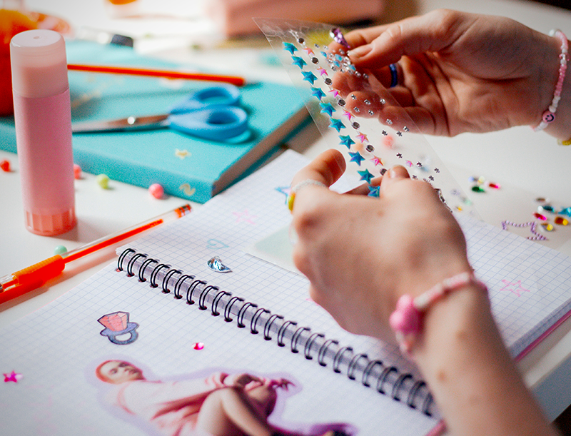 You can also mix in colors and glitter to create glitter glue or buy some from the store.