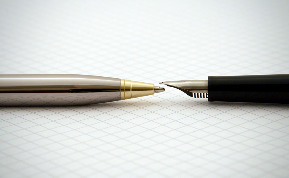 Additionally, fountain pens can be used for detailed work since fountain pen ink flows evenly from the nib.