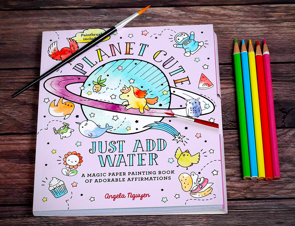 The pigment is already embedded in the page, so all you have to do is add water and watch the colors come to life.
