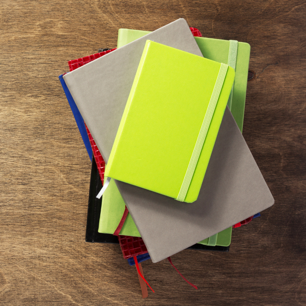 These books come in all shapes and sizes, including journals, planners, sketchbooks, fitness trackers, coloring books, scrapbooks, music composition notebooks, and more.