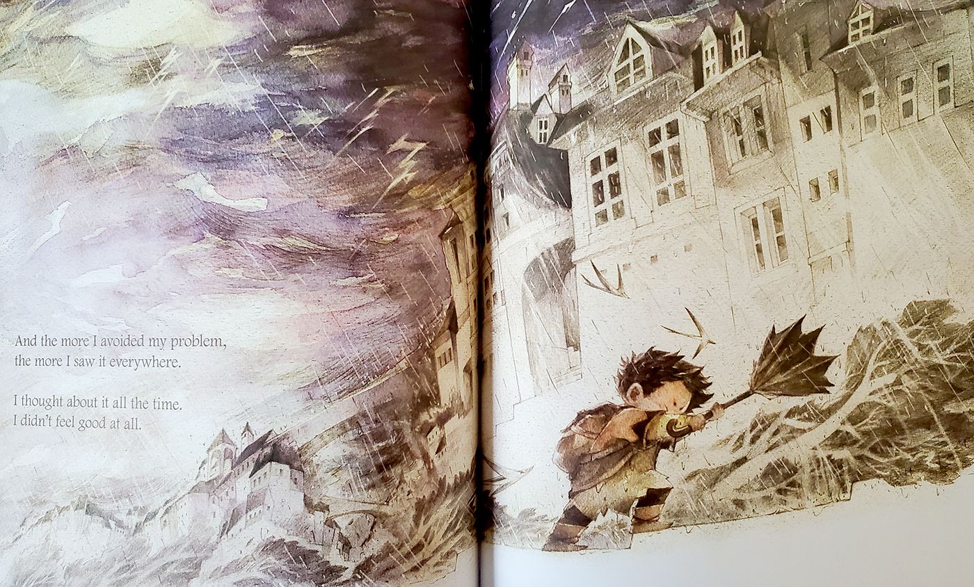 As the child struggles, the problem grows bigger and bigger until, eventually, the boy is forced to face up to it.