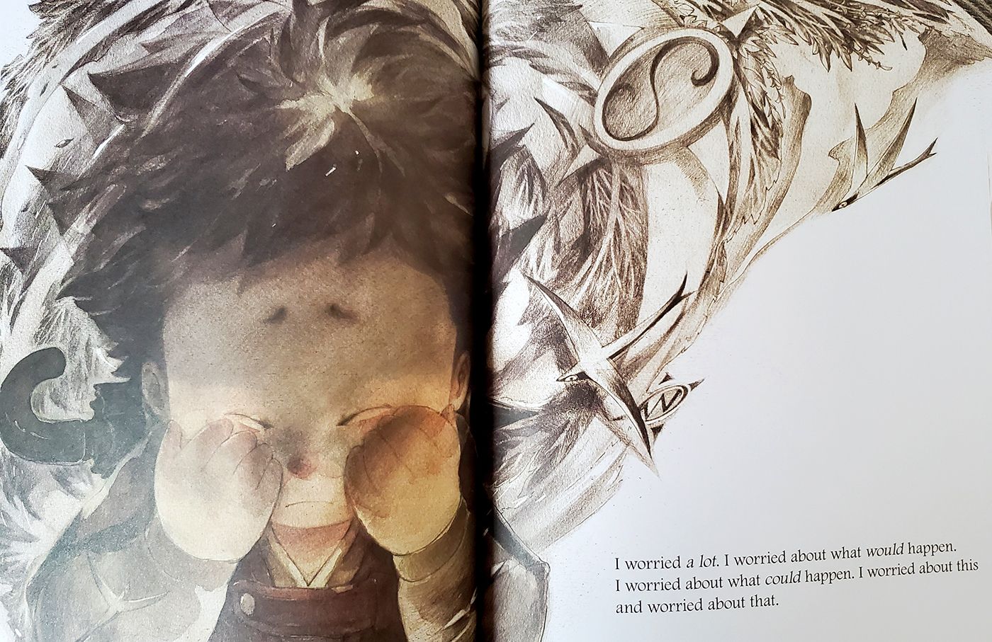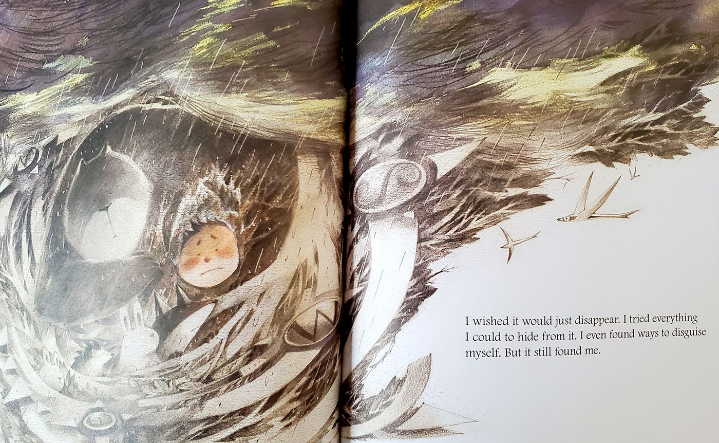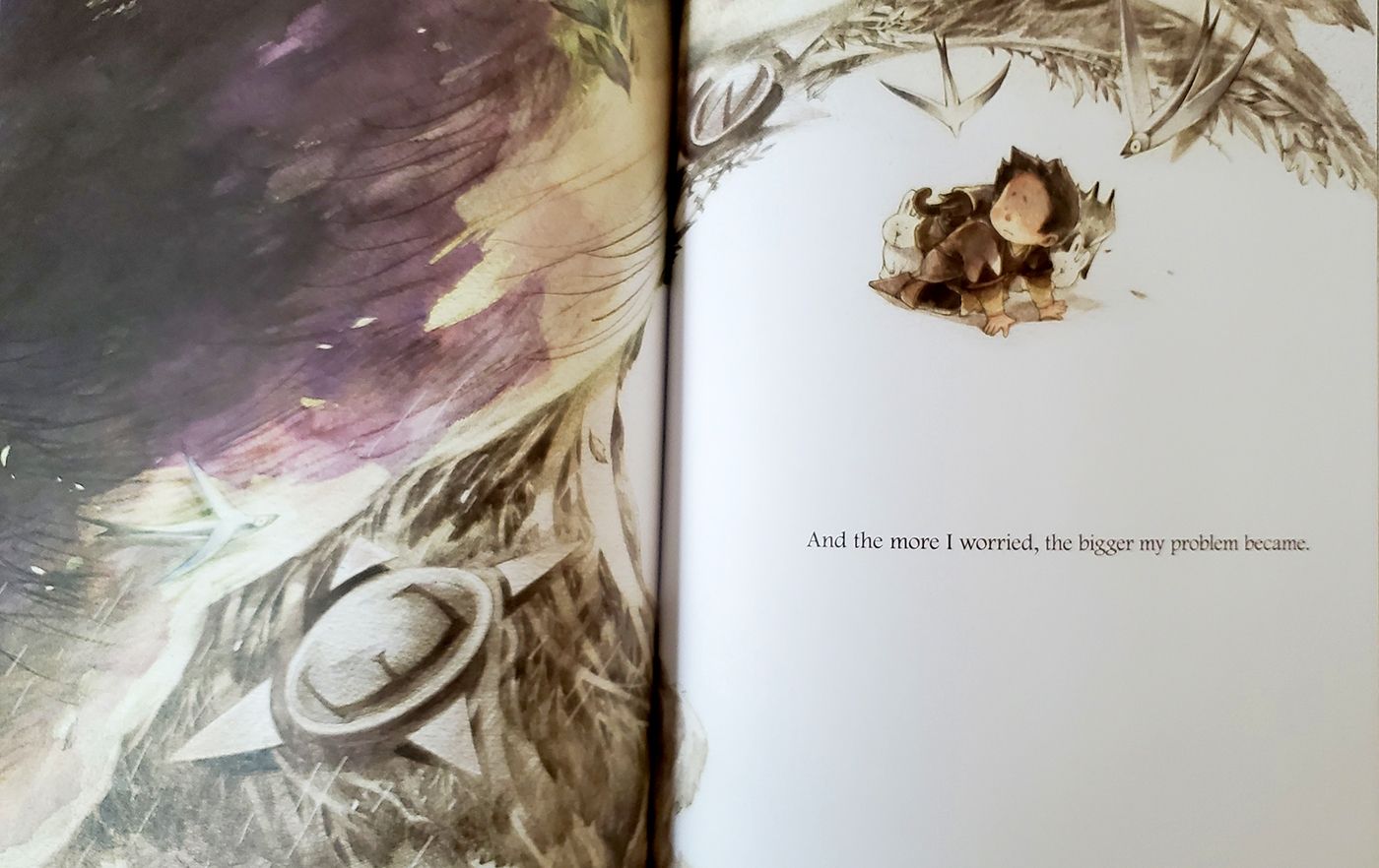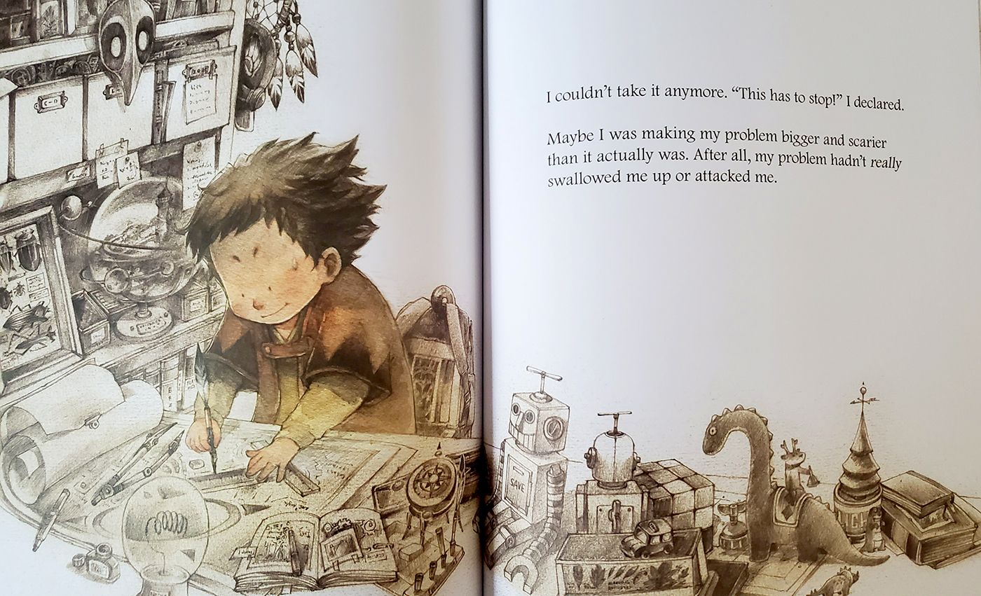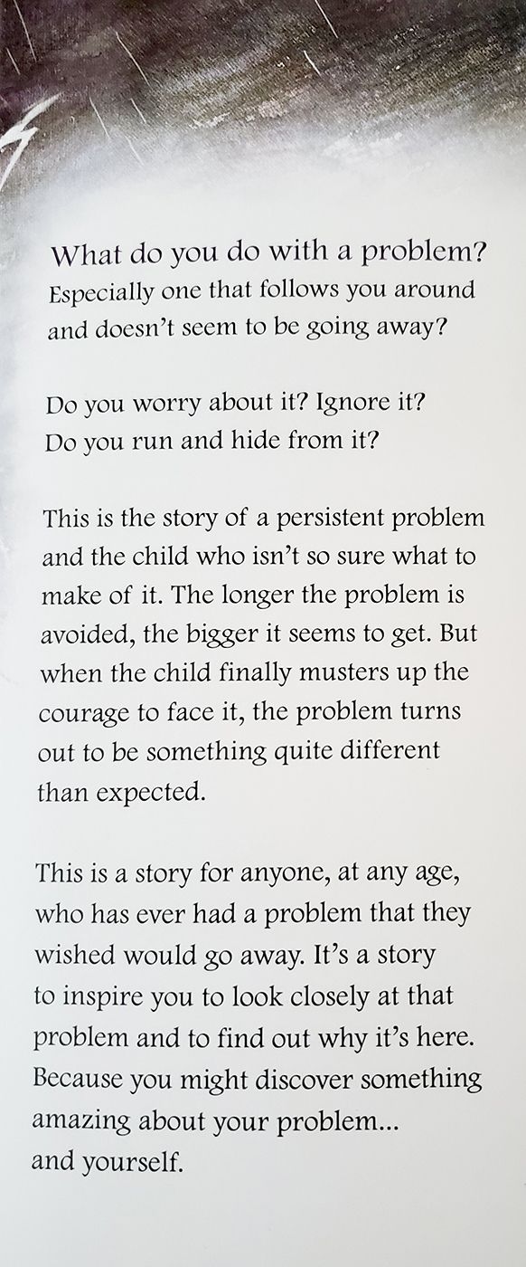 However, trying to hide from his problem only makes things worse; the problem persists, growing larger and scarier, causing the boy to worry and avoid it even more.