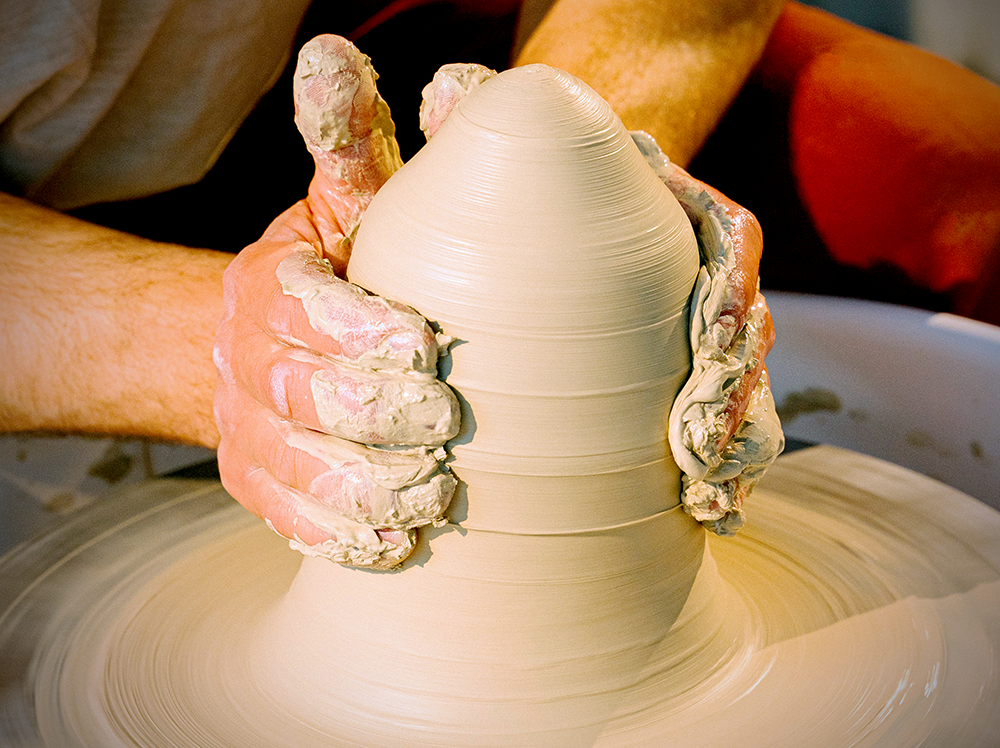 Considered easier for beginners, hand building provides superior control over the clay and the ease to make improvements, thereby facilitating the understanding of how clay responds to manipulation.