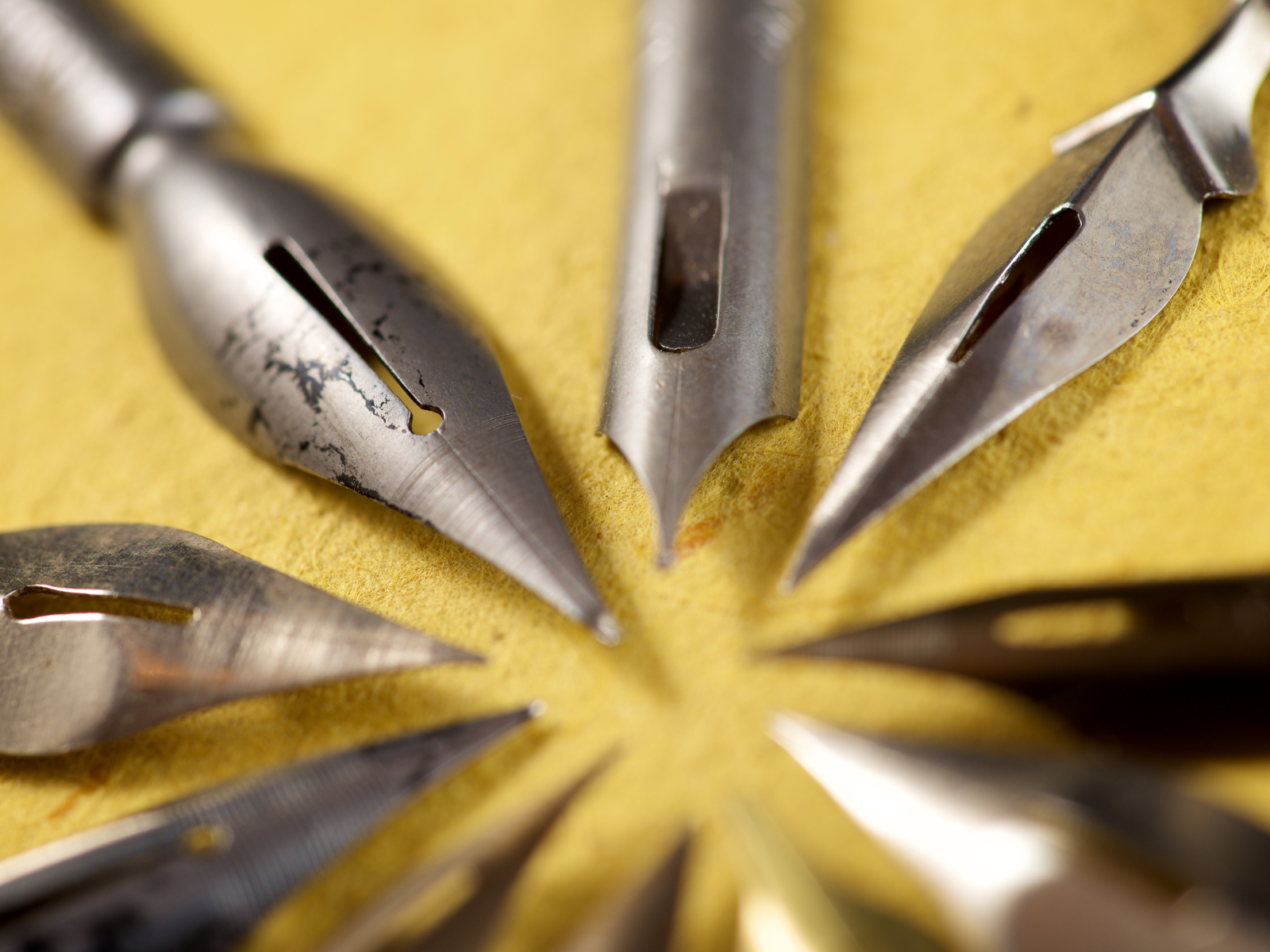 Initially, nibs were made from reeds and later transitioned to metals and metal alloys.