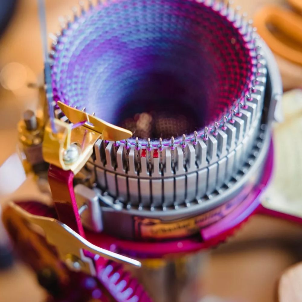 These amazing contraptions use needles to weave yarn back and forth, creating an endless loop of knit fabric.