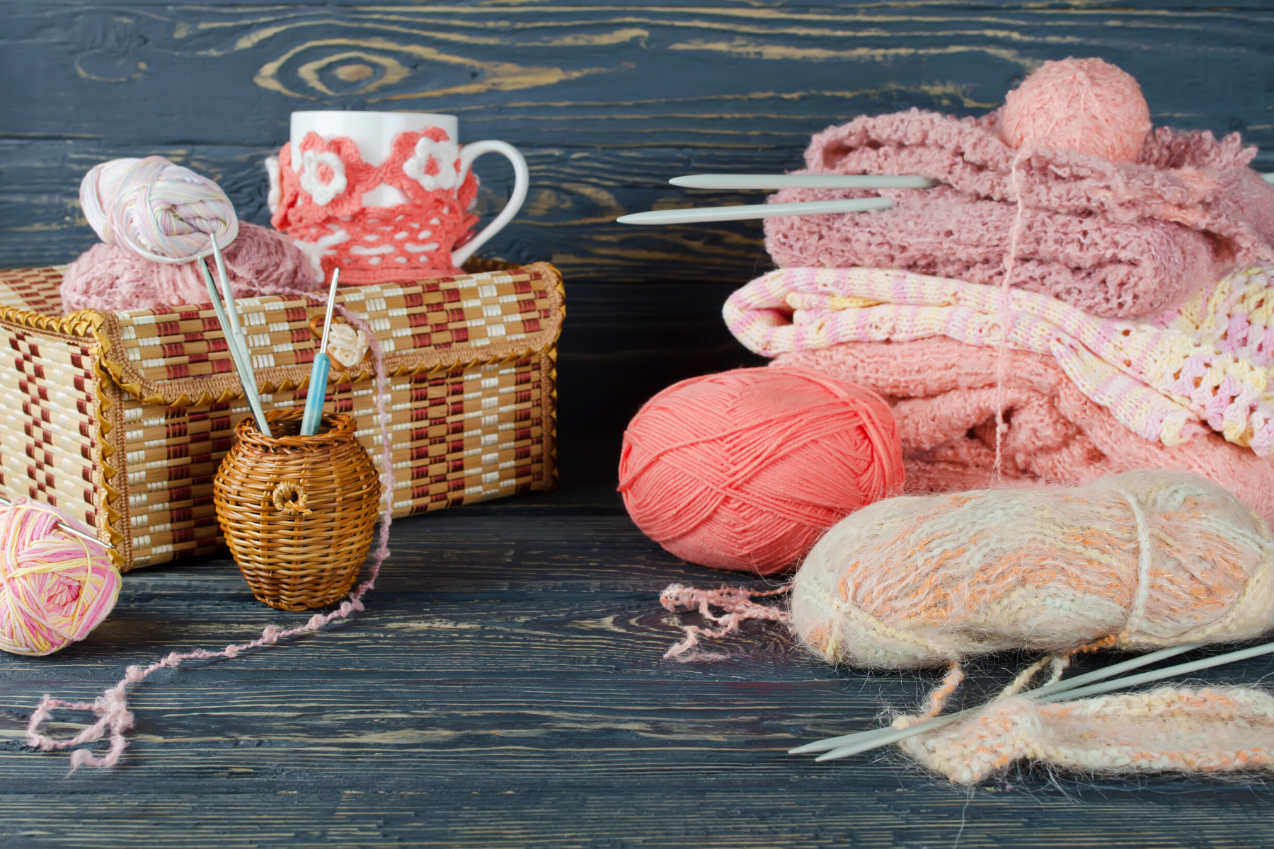 These include yarn and scissors for certain, but other supplies, like tapestry needles, knitting needles, crochet hooks, and weaving looms, will also be useful.